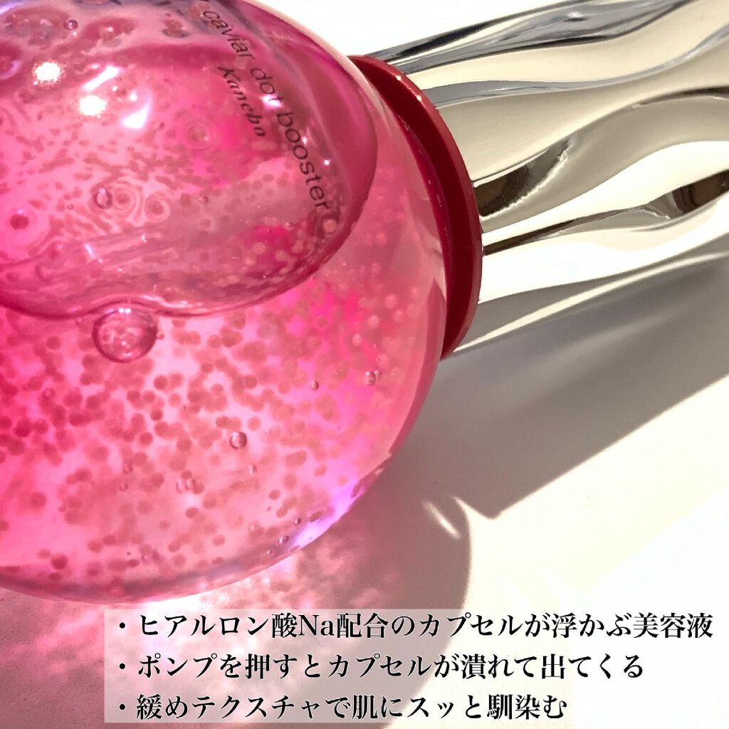 - “ヒアロキャビア※(保湿)”がつかうたびに弾け、美容液とともに、お肌に隙間なく広がります。次に使う化粧水をなじみやすくし、角層深くにうるおいを届け、ハリ密肌に導く美滴導入美容液です。 ※ ヒアルロン酸Naなどをキャビア状カプセルに閉じ込めた保湿成分(ヒアルロン酸Na、カンテン、カラギーナン、シリカ、マイカ、酸化鉄、酸化チタン)