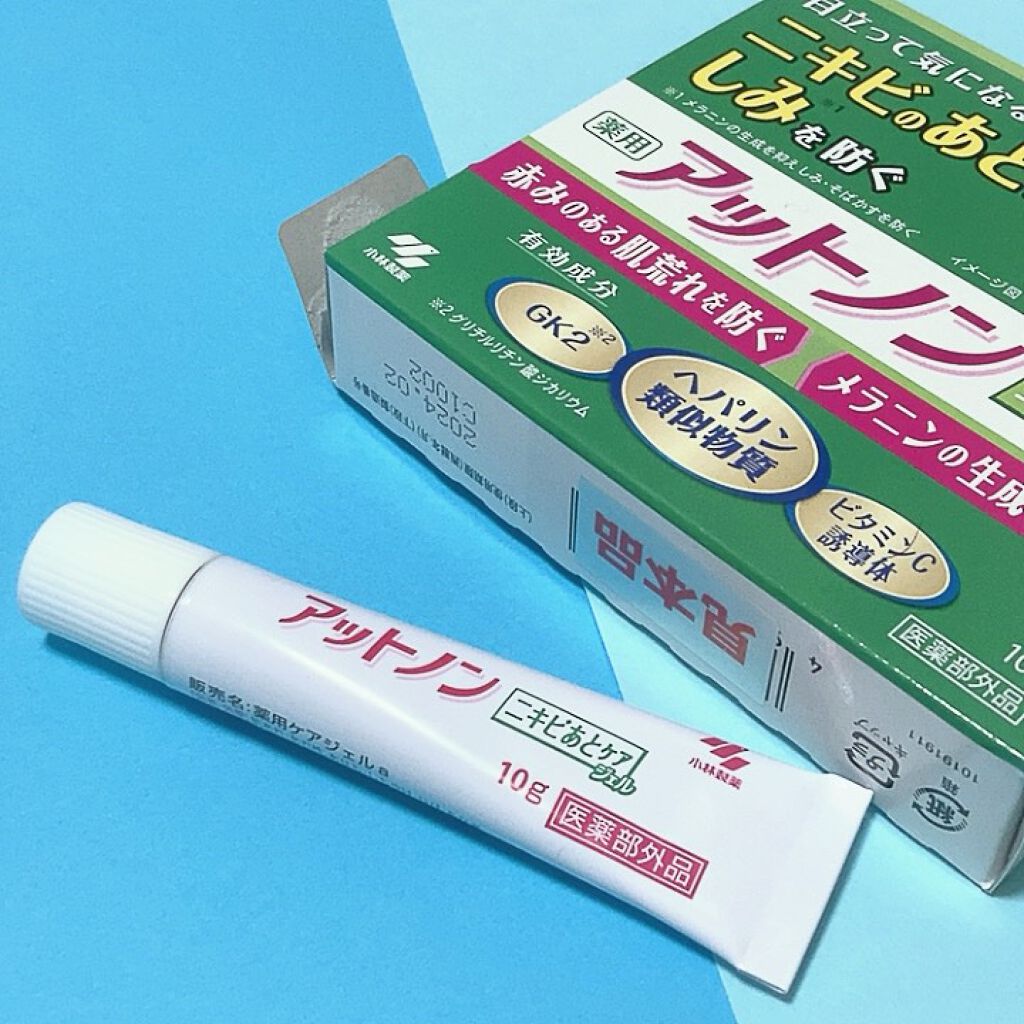 \ニキビのあとケア、コレ使って♡/ニキビのあとは、刺激などの炎症によりメラニンの生成が促されてしみになりやすいの🥲そうなる前にコレがオススメ!♡小林製薬アットノンニキビあとケアジェル(医薬部外品)スキンケアの最後ではなく洗顔後、スキンケア前に...