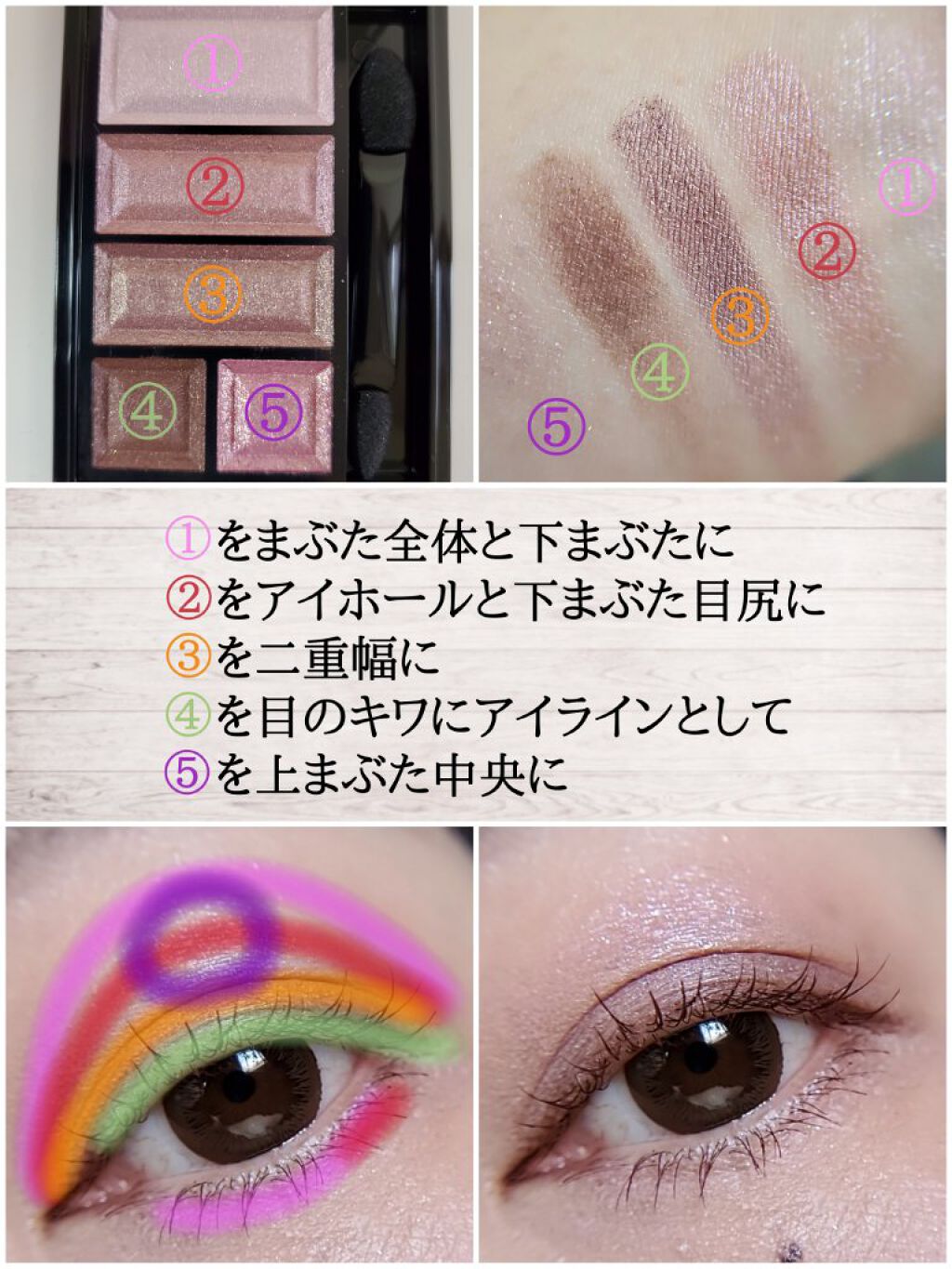 可愛い色味で、こういうカラーバランスのパレットは持っていなかったので見た目で選びました。 ほんわかした可愛らしいピンクとオレンジに、シルバーのニュアンスをプラス。うるっとした目元を演出する抜け感パレット。