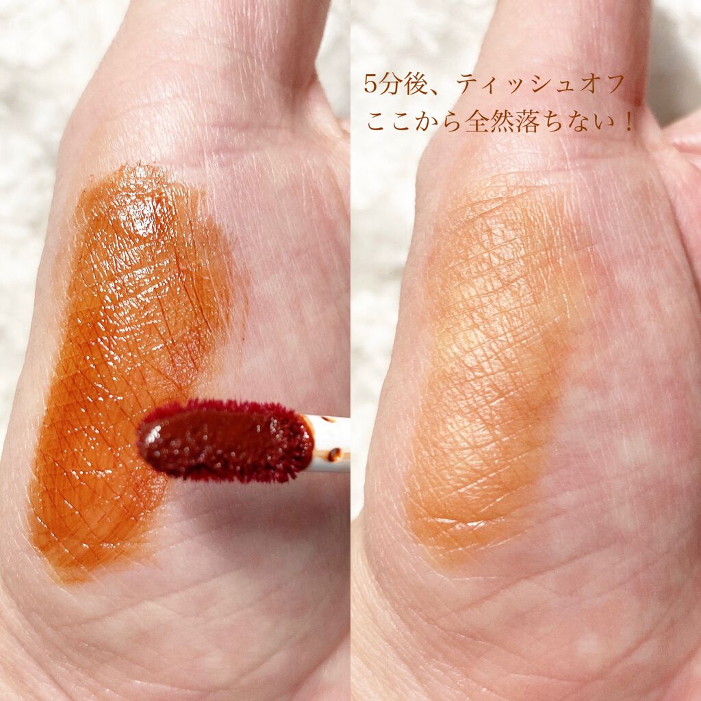- ツヤ膜でLIPカラーを閉じ込める 塗ってから「5分」でかわいい唇完成♥ツヤがあふれ出るオイルinウォーターティント 水に対して約2倍のオイル成分を配合した「オイルinウォーター処方」 時間経過でツヤ膜がじゅわ~っとあふれ出し、 まるでグロスを重ねたような仕上がりに。みずみずしいツヤ感が持続します。 塗布後、時間経過(※)で色が定着して食べても飲んでも血色長持ち。 (※定着には個人差があります。弊社5分推奨) 高密着で唇に溶け込むように色づきます。 コップやペットボトルへの色移りがしにくくなります。