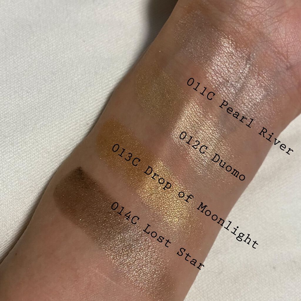 ボビイブラウンの名品ムーンストーンはベースがクリアなのでどんなアイシャドウにも合わせられるし上からトッピングするのにも向いています。 アディクションのマリアージュは2,200円でこの煌めき! 一番安いのに一番輝く、さすがです。 秋蛍は実はトッピングするとベースのシャドウを殺してしまうので目頭、下瞼などポイント使いかベースに使うのがおすすめです。