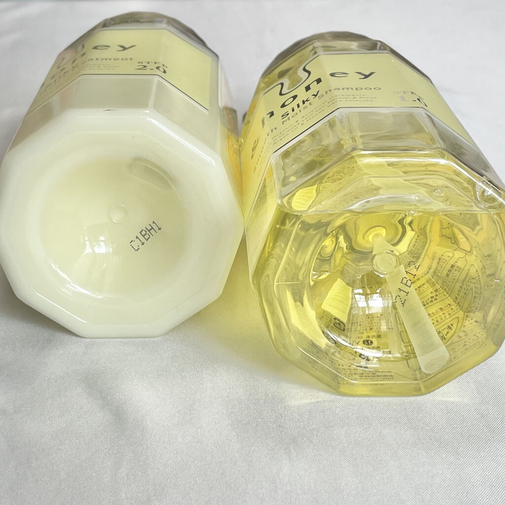 - <ヘアトリートメント(詰替)385g> 水、ラウラミドプロピルベタイン、ラウロイルメチルアラニンNa、コカミドプロピルベタイン、オレフィン(C14-16)スルホン酸Na、グリセリン、コカミドDEA、ハチミツ、加水分解ハチミツタンパク、アルガニアスピノサ核油、シア脂グリセレス-8エステルズ、加水分解シルク、イソステアロイル加水分解シルク、加水分解ウールキューティクルタンパク、γ-ドコサラクトン、ヒアルロン酸Na、セレブロシド、シア脂、パンテノール、ケラチン(羊毛)、ゼイン、ベルガモット果実油、ミリスチルベタイン、ココイルグルタミン酸TEA、ポリクオタニウム-47、PPG-7、EDTA-2Na、ポリクオタニウム-10、塩化Na、キサンタンガム、イソステアリン酸、セバシン酸ジエチル、メントール、水酸化K、黄5、ジエチルアミノヒドロキシベンゾイル安息香酸ヘキシル、メトキシケイヒ酸エチルヘキシル、ペンチレングリコール、安息香酸Na、クエン酸、黄4、DPG、BG、フェノキシエタノール、香料、セテアリルアルコール、ベヘントリモニウムクロリド、ジメチコン、トリエチルヘキサノイン、ソルビトール、セイヨウナシ果実エキス、ヒドロキシエチルセルロース、ペンテト酸5Na、クエン酸Na、アミノプロピルジメチコン <シャンプー本体440ml> 水、ラウラミドプロピルベタイン、ラウロイルメチルアラニンNa、コカミドプロピルベタイン、オレフィン(C14-16)スルホン酸Na、グリセリン、コカミドDEA、ハチミツ、加水分解ハチミツタンパク、アルガニアスピノサ核油、シア脂グリセレス-8エステルズ、加水分解シルク、イソステアロイル加水分解シルク、加水分解ウールキューティクルタンパク、γ-ドコサラクトン、ヒアルロン酸Na、セレブロシド、シア脂、パンテノール、ケラチン(羊毛)、ゼイン、ベルガモット果実油、ミリスチルベタイン、ココイルグルタミン酸TEA、ポリクオタニウム-47、PPG-7、EDTA-2Na、ポリクオタニウム-10、塩化Na、キサンタンガム、イソステアリン酸、セバシン酸ジエチル、メントール、水酸化K、黄5、ジエチルアミノヒドロキシベンゾイル安息香酸ヘキシル、メトキシケイヒ酸エチルヘキシル、ペンチレングリコール、安息香酸Na、クエン酸、黄4、DPG、BG、フェノキシエタノール、香料 <ヘアトリートメント本体445g> 水、セテアリルアルコール、ベヘントリモニウムクロリド、グリセリン、ジメチコン、トリエチルヘキサノイン、ソルビトール、ハチミツ、加水分解ハチミツタンパク、アルガニアスピノサ核油、加水分解シルク、イソステアロイル加水分解シルク、加水分解ウールキューティクルタンパク、γ-ドコサラクトン、ヒアルロン酸Na、セレブロシド、シア脂、パンテノール、ケラチン(羊毛)、ゼイン、セイヨウナシ果実エキス、キサンタンガム、ヒドロキシエチルセルロース、ペンテト酸5Na、クエン酸、クエン酸Na、セバシン酸ジエチル、黄4、イソステアリン酸、アミノプロピルジメチコン、DPG、BG、フェノキシエタノール、香料 <シャンプー(詰替)350ml> 水、ラウラミドプロピルベタイン、ラウロイルメチルアラニンNa、コカミドプロピルベタイン、オレフィン(C14-16)スルホン酸Na、グリセリン、コカミドDEA、ハチミツ、加水分解ハチミツタンパク、アルガニアスピノサ核油、シア脂グリセレス-8エステルズ、加水分解シルク、イソステアロイル加水分解シルク、加水分解ウールキューティクルタンパク、γ-ドコサラクトン、ヒアルロン酸Na、セレブロシド、シア脂、パンテノール、ケラチン(羊毛)、ゼイン、ベルガモット果実油、ミリスチルベタイン、ココイルグルタミン酸TEA、ポリクオタニウム-47、PPG-7、EDTA-2Na、ポリクオタニウム-10、塩化Na、キサンタンガム、イソステアリン酸、セバシン酸ジエチル、メントール、水酸化K、黄5、ジエチルアミノヒドロキシベンゾイル安息香酸ヘキシル、メトキシケイヒ酸エチルヘキシル、ペンチレングリコール、安息香酸Na、クエン酸、黄4、DPG、BG、フェノキシエタノール、香料 <ヘアトリートメント(詰替)350g> 水、セテアリルアルコール、ベヘントリモニウムクロリド、グリセリン、ジメチコン、トリエチルヘキサノイン、ソルビトール、ハチミツ、加水分解ハチミツタンパク、アルガニアスピノサ核油、加水分解シルク、イソステアロイル加水分解シルク、加水分解ウールキューティクルタンパク、γ-ドコサラクトン、ヒアルロン酸Na、セレブロシド、シア脂、パンテノール、ケラチン(羊毛)、ゼイン、セイヨウナシ果実エキス、キサンタンガム、ヒドロキシエチルセルロース、ペンテト酸5Na、クエン酸、クエン酸Na、セバシン酸ジエチル、黄4、イソステアリン酸、アミノプロピルジメチコン、DPG、BG、フェノキシエタノール、香料 <お試し(シャンプー10ml+トリートメント10g)> 水、ラウラミドプロピルベタイン、ラウロイルメチルアラニンNa、コカミドプロピルベタイン、オレフィン(C14-16)スルホン酸Na、グリセリン、コカミドDEA、ハチミツ、加水分解ハチミツタンパク、アルガニアス