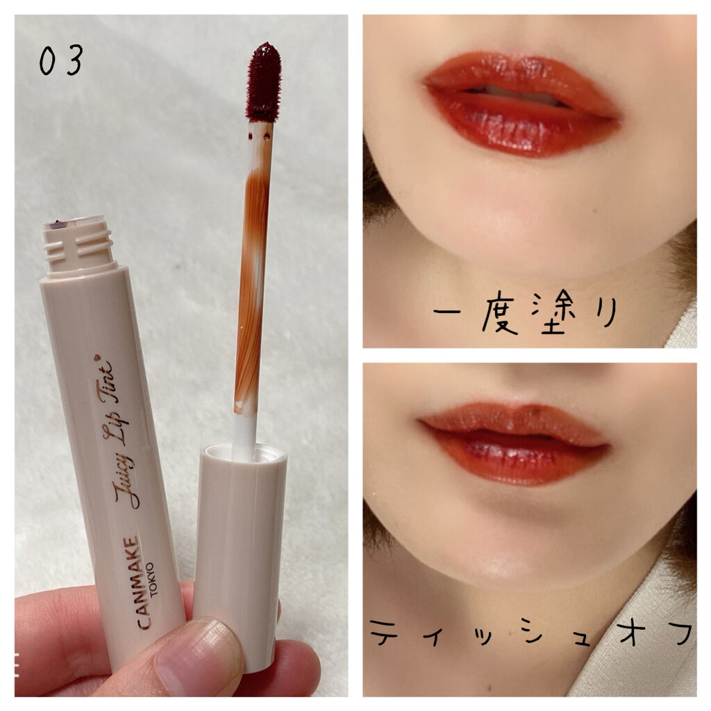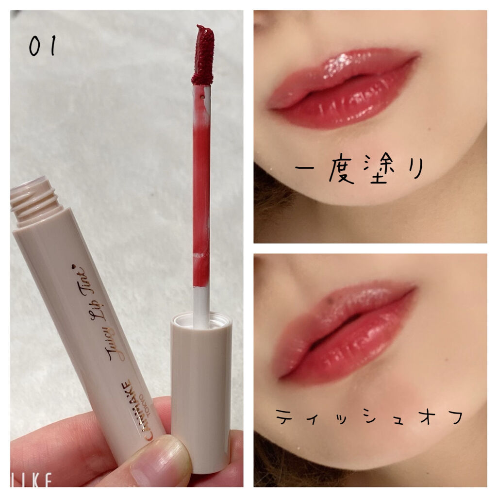 - ツヤ膜でLIPカラーを閉じ込める 塗ってから「5分」でかわいい唇完成♥ツヤがあふれ出るオイルinウォーターティント 水に対して約2倍のオイル成分を配合した「オイルinウォーター処方」 時間経過でツヤ膜がじゅわ~っとあふれ出し、 まるでグロスを重ねたような仕上がりに。みずみずしいツヤ感が持続します。 塗布後、時間経過(※)で色が定着して食べても飲んでも血色長持ち。 (※定着には個人差があります。弊社5分推奨) 高密着で唇に溶け込むように色づきます。 コップやペットボトルへの色移りがしにくくなります。