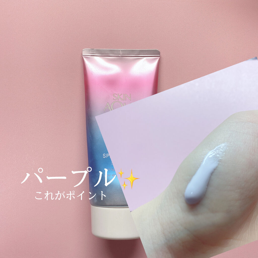 - ※カラー名称「ハピネスオーラ」は「ローズ」へ名称変更となりました。 <ミントグリーン> 赤み補正*1!UVカットしながら、色と光をコントロールし、肌をトーンアップ*1。 ミントグリーンカラーで透き通るような素肌つづく!エッセンスタイプの日焼け止め。 透明感*1のある肌に。 SPF50+、PA++++、UV耐水性★★。 鉱物油フリー。パラベンフリー。ときめくサボンの香り。 <ラベンダー> 明るさ補正*1!UVカットしながら、色と光をコントロールし、肌をトーンアップ*1。 透明感*1を引き出すラベンダーカラーの日焼け止め。 すーっとのびて、みずみずしい使い心地のエッセンスタイプ。 SPF50+、PA++++、UV耐水性★★。 鉱物油フリー。パラベンフリー。ときめくサボンの香り。 <ローズ> 血色感補正*1!UVカットしながら、色と光をコントロールし、肌をトーンアップ*1。 ローズカラーで血色をプラスし、透明感*1のある肌に。 エッセンスタイプの日焼け止め。 SPF50+、PA++++、UV耐水性★★。 パラベンフリー。ハピネスブロッサムの香り。 <ブルー> UVカットしながら、色と光をコントロールし、肌をトーンアップ*1。 血色感を抑えて儚げな色白肌*1に見せるブルーカラーの顔・からだ用日やけ止め。すーっとのびて、みずみずしい使い心地。 透明感ブルー×透明感ホワイト=はかなげブルーカラーで、自分史上最高*2の色白肌*1、うるおう美容液成分(うるおい成分)としてヒアルロン酸Na、ビタミンC誘導体*3配合。 SPF50+/PA++++。こころがときめくサボンの香り。化粧下地にも。石けんで落とせます。 パラベンフリー。鉱物油フリー。アレルギーテスト済み(全ての方にアレルギーが起こらないというわけではありません)。 *1:メイクアップ効果による *2:スキンアクアシリーズにおいて *3:リン酸アスコルビルMg(うるおい成分)
