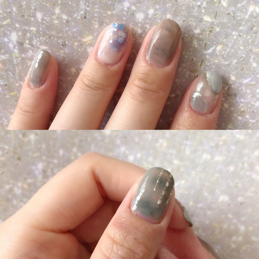 ジェルネイル成分*が配合された 進化したマニキュア 大人っぽい可愛さと、60秒速乾なところが特長です( ´•ᴥ•` )✨ 128フェイト……くすんだプラムカラーにラメぎっしりで めーーちゃ大人可愛いネイルです✧*。 乾くのすごい早くて助かりの極み これは寝る前にサクッと塗れるネイルです。