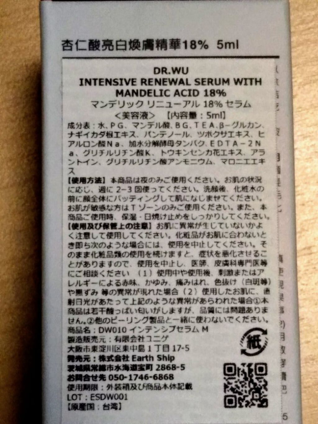 商品詳細情報DR.WU マンデリック インテンシブ 18%セラム