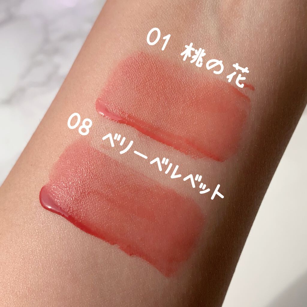 - <01桃の花> 水、ジメチコン、グリセリン、(ジメチコン/ビニルジメチコン)クロスポリマー、変性アルコール、ペンチレングリコール、ミリスチン酸ポリグリセリル-10、ジメチコンクロスポリマー、ポリアクリレートクロスポリマー-6、BG、フェノキシエタノール、セテアレス-20、エチルヘキシルグリセリン、香料、エチレンジアミンジコハク酸3Na、水酸化Al、ポリアクリル酸アンモニウム、アルギニン、カルボマー、キシリチルグルコシド、無水キシリトール、キシリトール、1,2-ヘキサンジオール、ヒアルロン酸Na、ヒアルロン酸ヒドロキシプロピルトリモニウム、加水分解ヒアルロン酸、アセチルヒアルロン酸Na、ヒアルロン酸、加水分解ヒアルロン酸Na、ヒアルロン酸クロスポリマーNa、ヒアルロン酸K、酸化チタン、黄5、赤227、黄4、青1 <03ハイビスカス> 水、ジメチコン、(ジメチコン/ビニルジメチコン)クロスポリマー、グリセリン、変性アルコール、ペンチレングリコール、ミリスチン酸ポリグリセリル-10、ジメチコンクロスポリマー、ポリアクリレートクロスポリマー-6、BG、フェノキシエタノール、セテアレス-20、エチルヘキシルグリセリン、香料、エチレンジアミンジコハク酸3Na、アルギニン、カルボマー、水酸化Al、ポリアクリル酸アンモニウム、キシリチルグルコシド、無水キシリトール、キシリトール、1,2-ヘキサンジオール、ヒアルロン酸Na、ヒアルロン酸ヒドロキシプロピルトリモニウム、加水分解ヒアルロン酸、アセチルヒアルロン酸Na、ヒアルロン酸、加水分解ヒアルロン酸Na、ヒアルロン酸クロスポリマーNa、ヒアルロン酸K、酸化チタン、赤227、赤102、赤104(1)、黄4、黄5 <05ソウラー> 水、ジメチコン、グリセリン、(ジメチコン/ビニルジメチコン)クロスポリマー、変性アルコール、ペンチレングリコール、ミリスチン酸ポリグリセリル-10、ジメチコンクロスポリマー、ポリアクリレートクロスポリマー-6、BG、フェノキシエタノール、セテアレス-20、エチルヘキシルグリセリン、香料、エチレンジアミンジコハク酸3Na、水酸化Al、ポリアクリル酸アンモニウム、アルギニン、カルボマー、キシリチルグルコシド、無水キシリトール、キシリトール、1,2-ヘキサンジオール、ヒアルロン酸Na、ヒアルロン酸ヒドロキシプロピルトリモニウム、加水分解ヒアルロン酸、アセチルヒアルロン酸Na、ヒアルロン酸、加水分解ヒアルロン酸Na、ヒアルロン酸クロスポリマーNa、ヒアルロン酸K、酸化チタン、黄5、赤227、黄4、青1 <06ライブリーローズ> 水、ジメチコン、(ジメチコン/ビニルジメチコン)クロスポリマー、グリセリン、変性アルコール、ペンチレングリコール、ミリスチン酸ポリグリセリル-10、ジメチコンクロスポリマー、ポリアクリレートクロスポリマー-6、BG、フェノキシエタノール、セテアレス-20、エチルヘキシルグリセリン、香料、エチレンジアミンジコハク酸3Na、水酸化Al、ポリアクリル酸アンモニウム、アルギニン、カルボマー、キシリチルグルコシド、無水キシリトール、キシリトール、1,2-ヘキサンジオール、ヒアルロン酸Na、ヒアルロン酸ヒドロキシプロピルトリモニウム、加水分解ヒアルロン酸、アセチルヒアルロン酸Na、ヒアルロン酸、加水分解ヒアルロン酸Na、ヒアルロン酸クロスポリマーNa、ヒアルロン酸K、酸化チタン、黄5、赤227、黄4、青1
