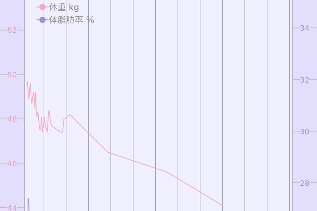 1ヶ月に1キロくらいしか減ってないときもありましたが、そのくらいのペースが大きなリバウンドせず良いのではないかと思います。