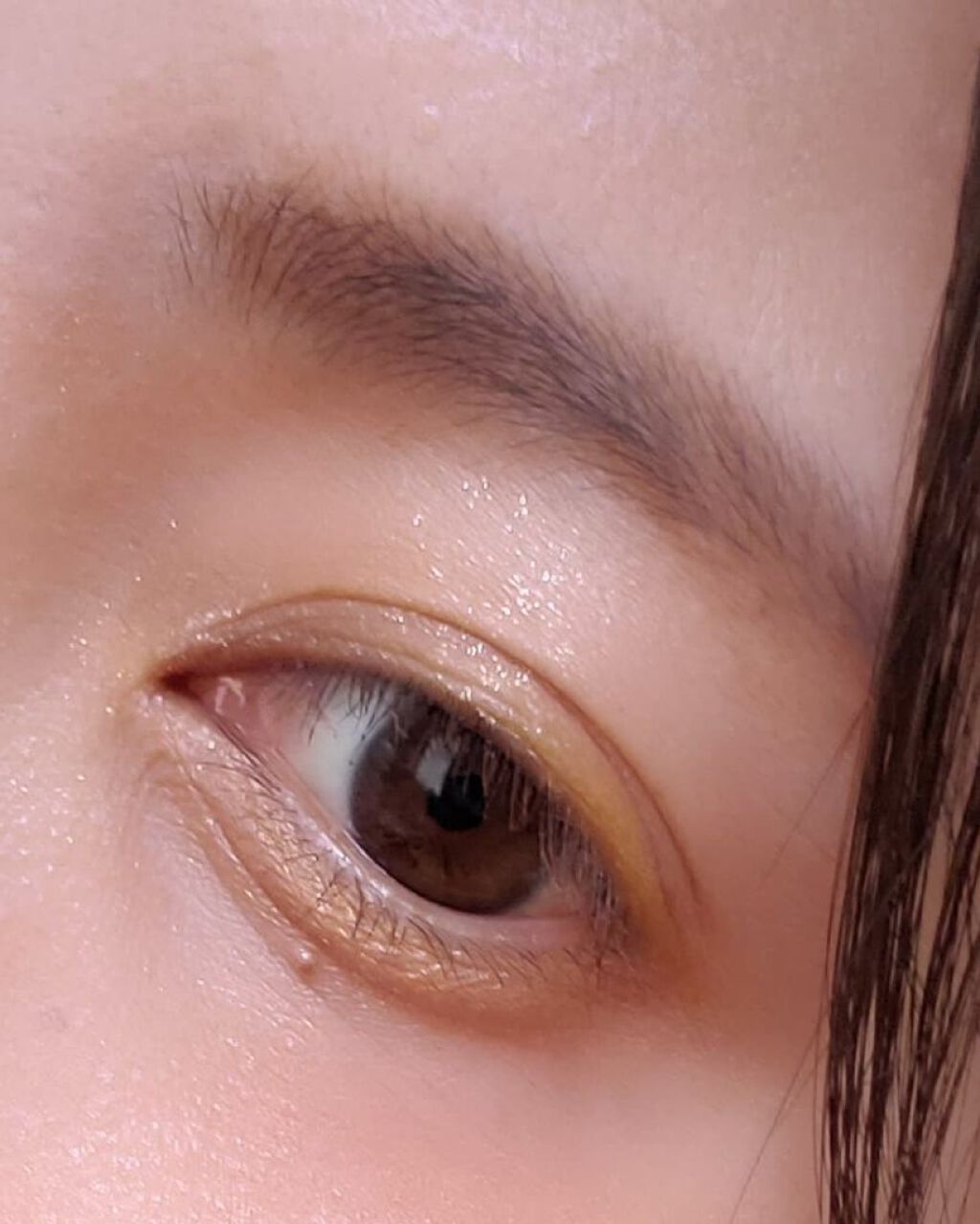 アイブロウは#whomeeのレッドブラウンを使用。 アイメイクは①#アンドビーの#クリームアイシャドウ マスタードを上下の瞼に。 アイメイクは②#misshaの#グリッタープリズムシャドウマーブル #ストームプリズムを①に重ねて。 下瞼は全体ではなく、黒目下にだけ✨ アイメイクは③#hinceの#ニューアンビエンスカラーアイライナー #エクレクティックを4枚目のように三角形に入れる。 チークは⑤#bisouの#ダイヤモンドグロウ マーズをほんのり✨ リップは⑥①のマスタードを塗った後に#celvokeの#エンスロールマットリップス 03を💋