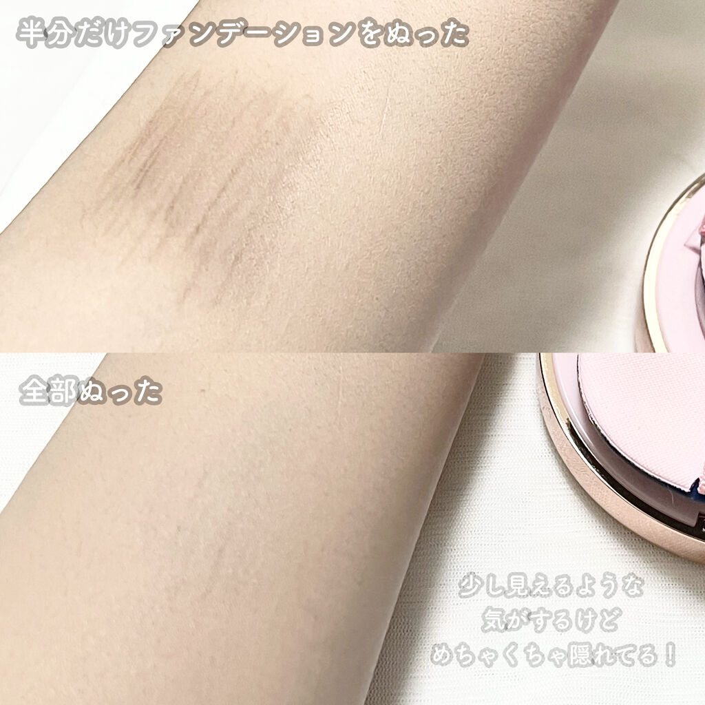 カバー力高いのに保湿力もあって良かった😍 トーンアップしてツヤ感でるクッションだったよ❣️ トラネキサム酸やツボクサエキスなど保湿成分や整肌成分が色々入っててスキンケアしながらメイクアップできる🙌✨ 高カバーでナチュラルな仕上がりになるから私みたいにニキビ跡ある人にもおすすめだよ😊