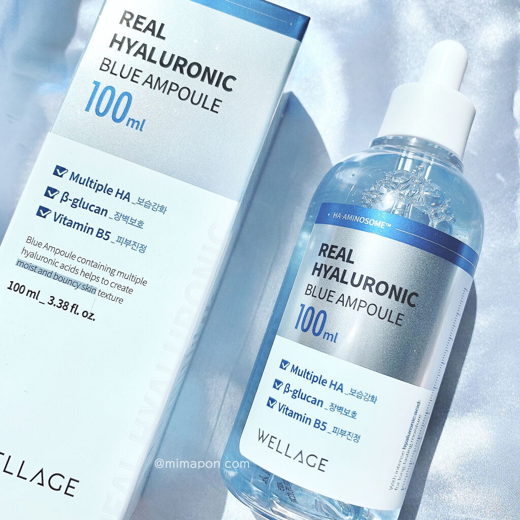 - 純度100%ヒアルロン酸で乾燥知らずの水光肌。 韓国の皮膚専門製薬会社から誕生したダーマコスメブランドWELLAGE! 純度100%のメディカルグレードのヒアルロン酸で透明感のある水光肌を手にでき、又、高分子~低分子の9重層のヒアルロン酸配合で成分を肌の隅々まで水分を到達してくれる美容液。 ダーマコスメ部門で2年連続受賞!韓国美容アプリで見ない日はないほど。 お肌の鎮静に効果的なシカ、パンテノール、ベータグルカンなどを多数配合!べたつかないのにしっかり保湿されます。 高分子~低分子の9重層のヒアルロン酸配合で、高保湿なのにも関わらず、 べたつかず、浸透率の良い美容液になります。 ブルーカラーは8つの自然由来成分カラーであり、敏感肌の方も安心してご利用頂けます。