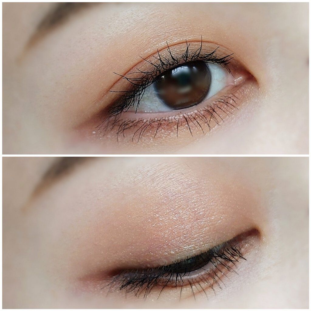 マットベージュをベースカラーにしてから、シルバーラメの入ったカーキを二重幅に。 下まぶたはパールが綺麗なピンクにしました✨ このパレットはラメ、マット、パールのバランスがとても良くて使いやすい! ナターシャは粉質も良く、ぼかしやすいです♡