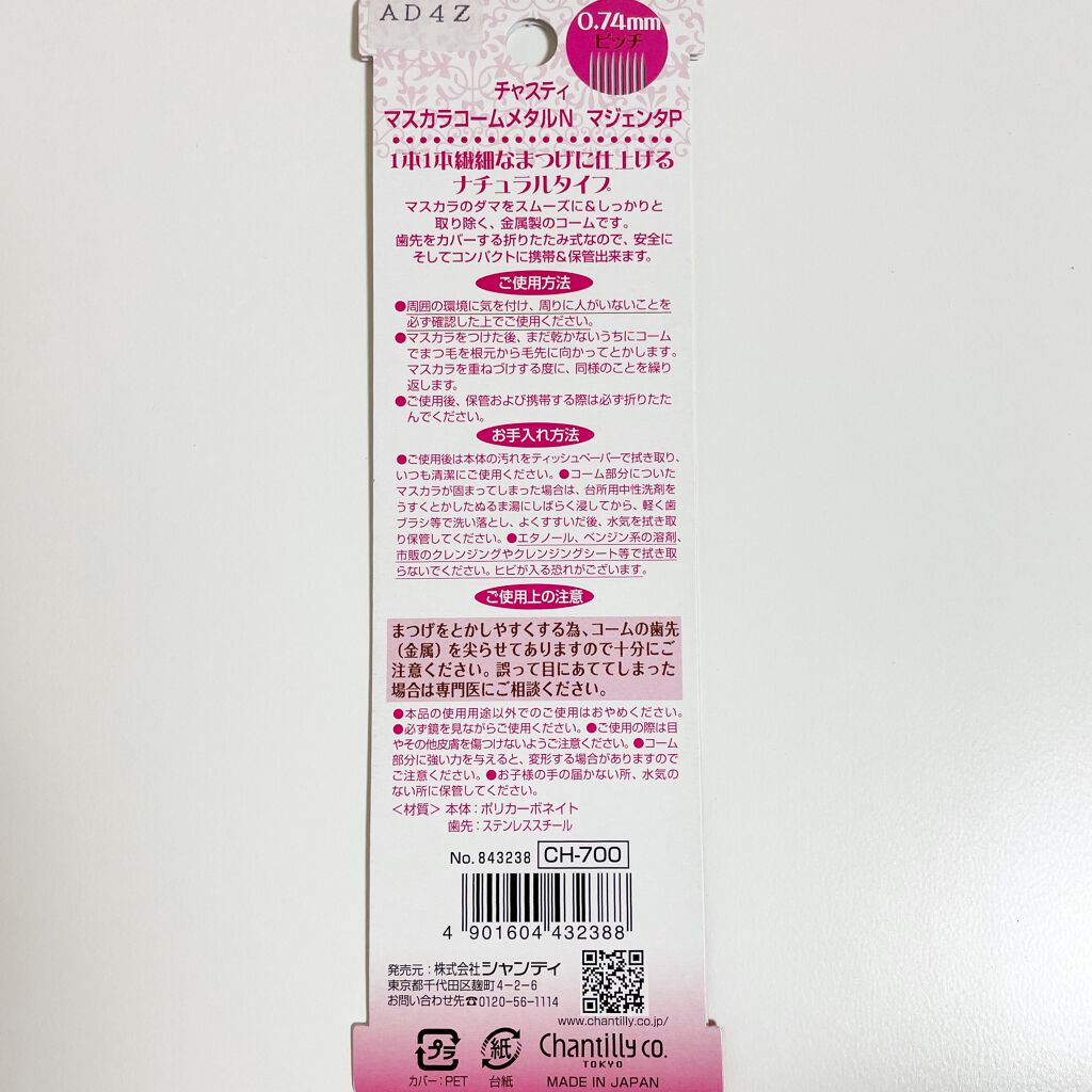 チャスティマスカラコームメタルNペールPLIPSショッピングにて¥770で購入二代目です✨今回は少し目が粗いタイプにしました!まつ毛が通しやすいですメタルコームがしっかりとまつ毛をセパレートに仕上げます🤍コンパクトにたためて便利✨まつ毛をとく...