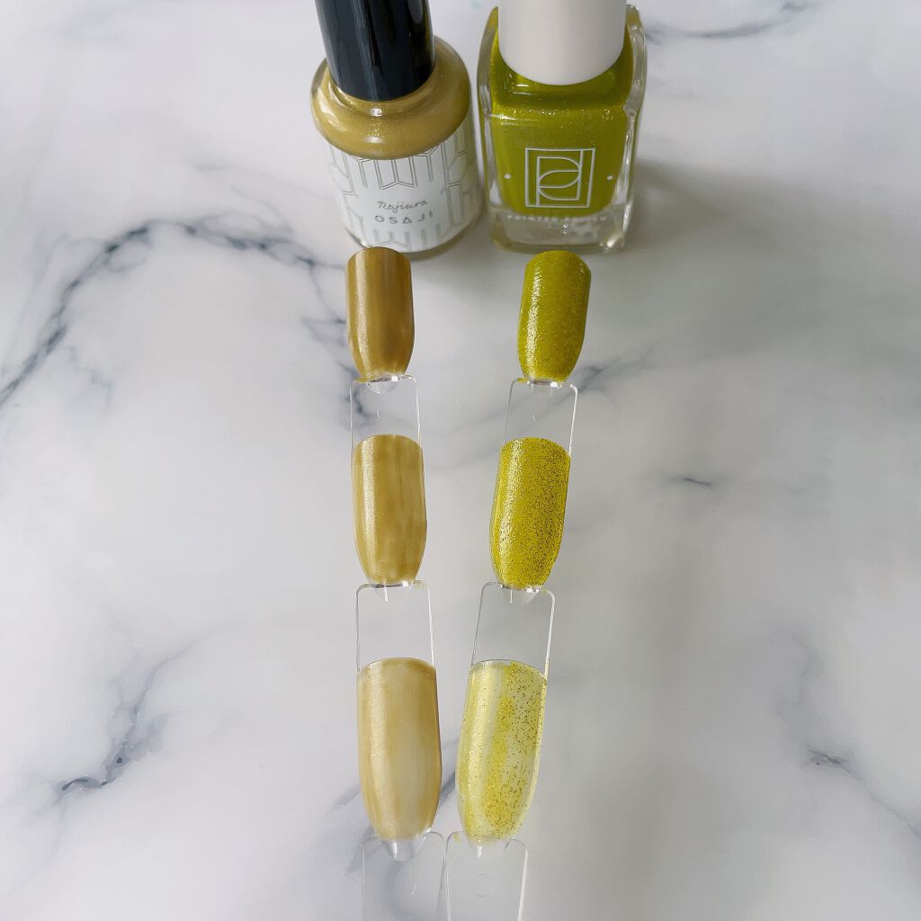 OSAJIは全部オシャレカラーだった‥‥どれも最高すぎる☺️❤️オサジ今回のネイルコレクション選べないね。選べないんだけど、蜜の1度塗りが特に好きです。n番煎じの比較🤳#21Juuniji〈12時〉#08Jikuu〈時空〉#22Mon〈門〉コ...
