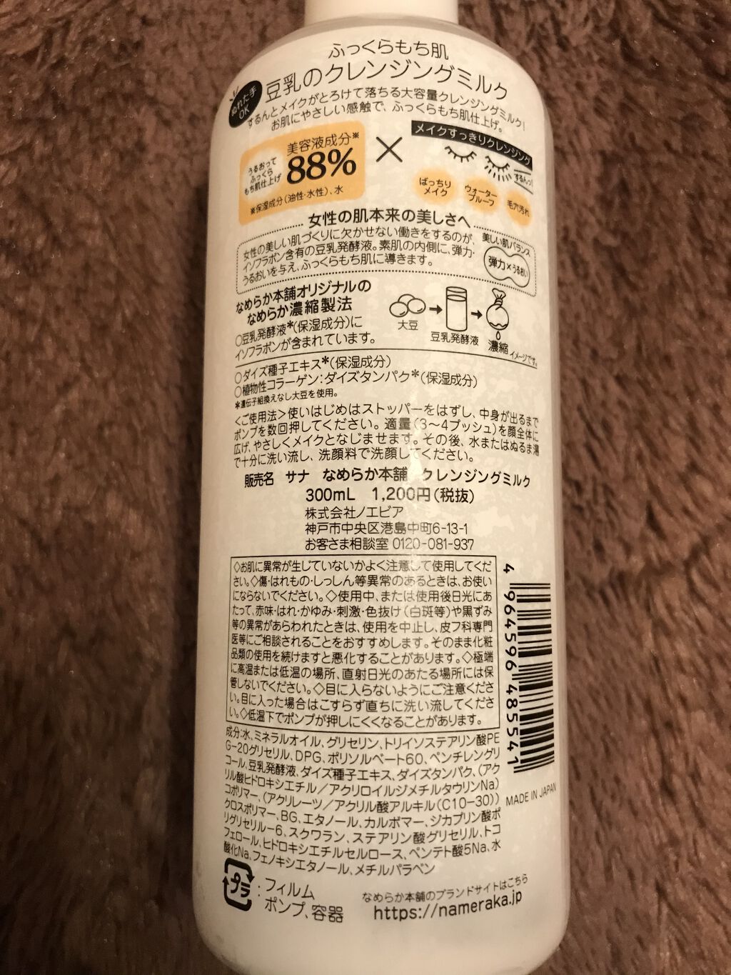 - 2023年3月7日リニューアル発売 ① 高純度豆乳イソフラボン※1新配合!NEW 九州産大豆「ふくゆたか」から作られた高純度豆乳イソフラボン※1と豆乳発酵液※1を贅沢に配合。 ② 独自処方で濃いメイクも速攻オフ!NEW メイクとすばやくなじむリムーバーオイル※2を新配合! ポイントメイクも毛穴汚れもとろっと簡単オフ♪濡れた手でもお使いいただけます。 ③ こだわりのオリジナル処方 柔らかなとろけるミルク。なめらかな肌あたりでやさしい洗い心地です。 美容液成分90%配合でうるおい感アップ※5! ※1 保湿成分 ※2 イソドデカン(保湿成分) ※5 クレンジングミルクと比較