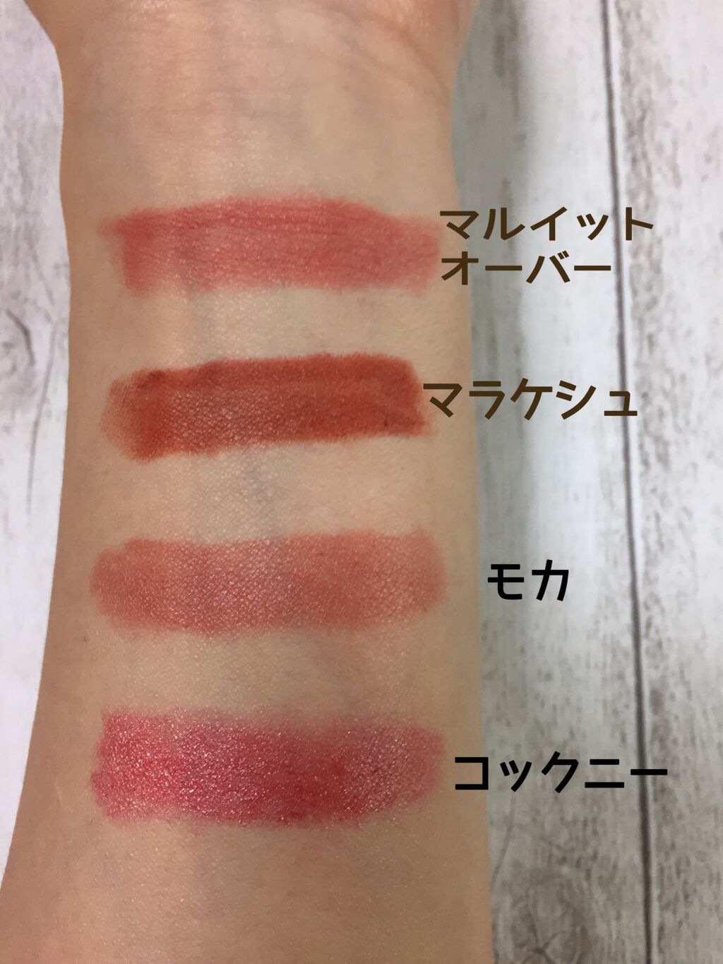 メルティールミナスルージュ、とろけるぬり心地が特徴的。 テラコッタ好きとしては、"04キャラメルテラコッタ"がイチオシ。 "06ビタールビーチョコレート"も可愛い印象のピンクブラウンで、つけやすくて大好きなカラー。 ティントタイプの"T02ロゼミルクティー"は、唇の色になじみやすいピンクブラウン。 "ステイオンバームルージュ"はバームタイプですけるような発色。 18ブラウニッシュマンダリンは、オレンジブラウン。 全部ふだんづかいしやすい可愛いカラーでおすすめですよ🎶