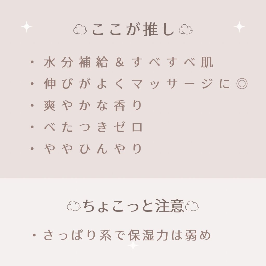 | ボディケアランキング第178位 | みずみずしくて伸びのいい、コクがあるのにべたつきにくいテクスチャーで、さっぱり使えてこれからの季節にピッタリ | 詳細を見る | |