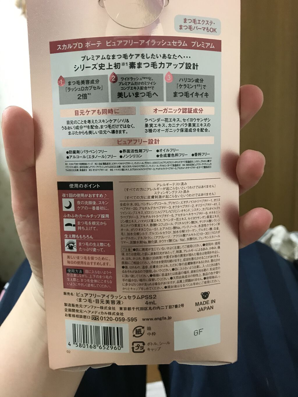 - スカルプDのまつ毛美容液プレミアムは、まつ毛ケア成分を通常品の2倍配合しており、1日1回のケアでもOK♪ さらに、プレミアムには、目元ケア成分配合。まつ毛のハリコシがアップし、上向きカールまつ毛をぐ~んとキープ♪ 使いやすさ・やさしさにこだわった、ふわふわカールチップ採用で根元からも塗りやすく、敏感な目元にやさしい使い心地です。 シリコン、オイル、アルコール(エタノール)、防腐剤(パラベン)、香料、合成着色料、界面活性剤、プロスタグランジン類似物質の8つの成分不使用の“ピュアフリー設計”を実現。 まつ毛エクステ、まつ毛パーマにもご使用いただけます。