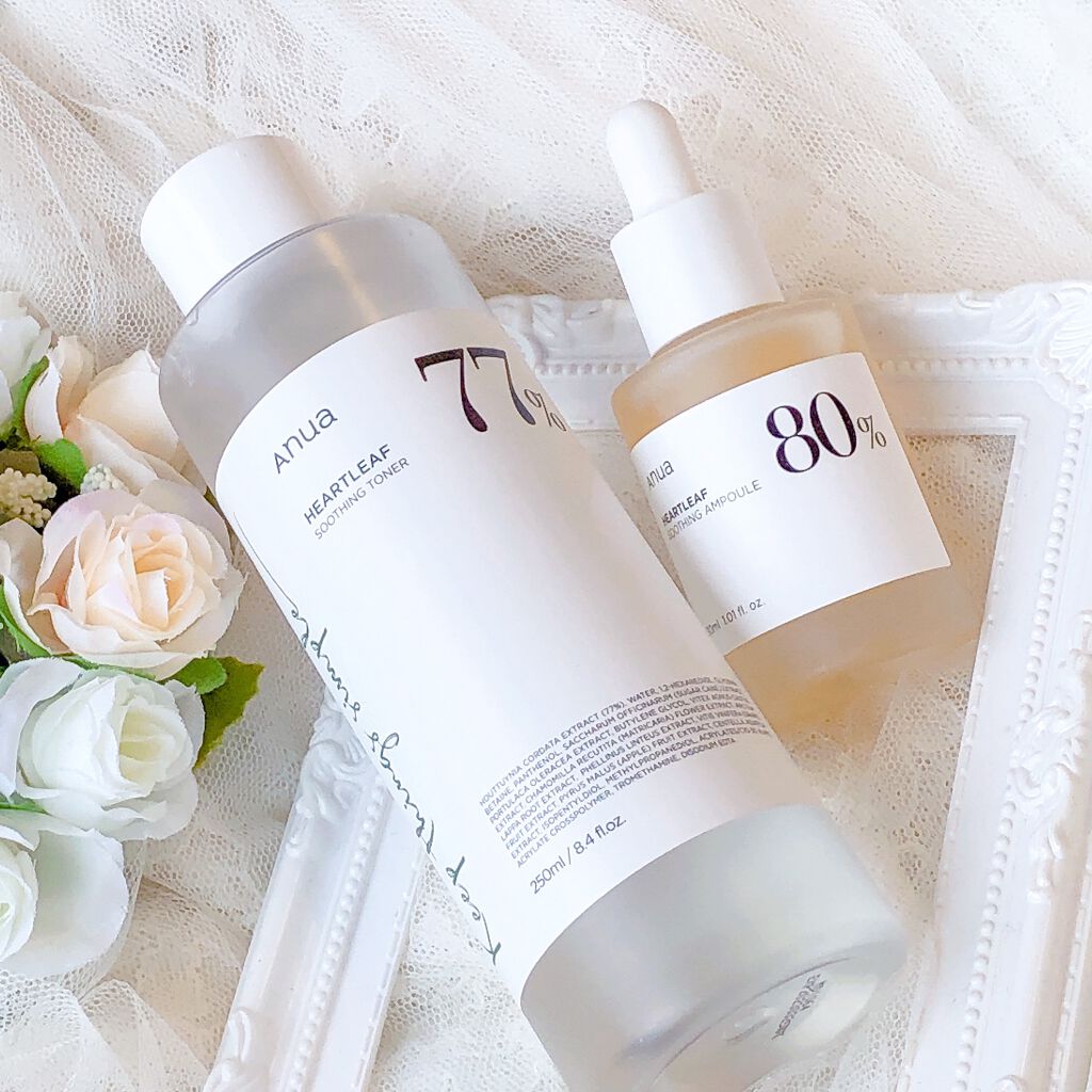 今回紹介するのは、Anuaのドクダミ77% スージングトナーとドクダミ80%スージングアンプルです! さらっとしておりべたつかないので初心者の方でも使いやすいです! これからの時期には保湿力が足りないかも?とは思いますが、乳液の後クリームを塗れば大丈夫かも!