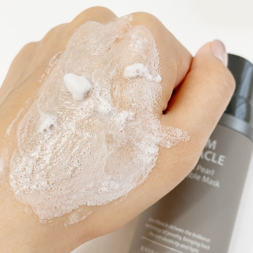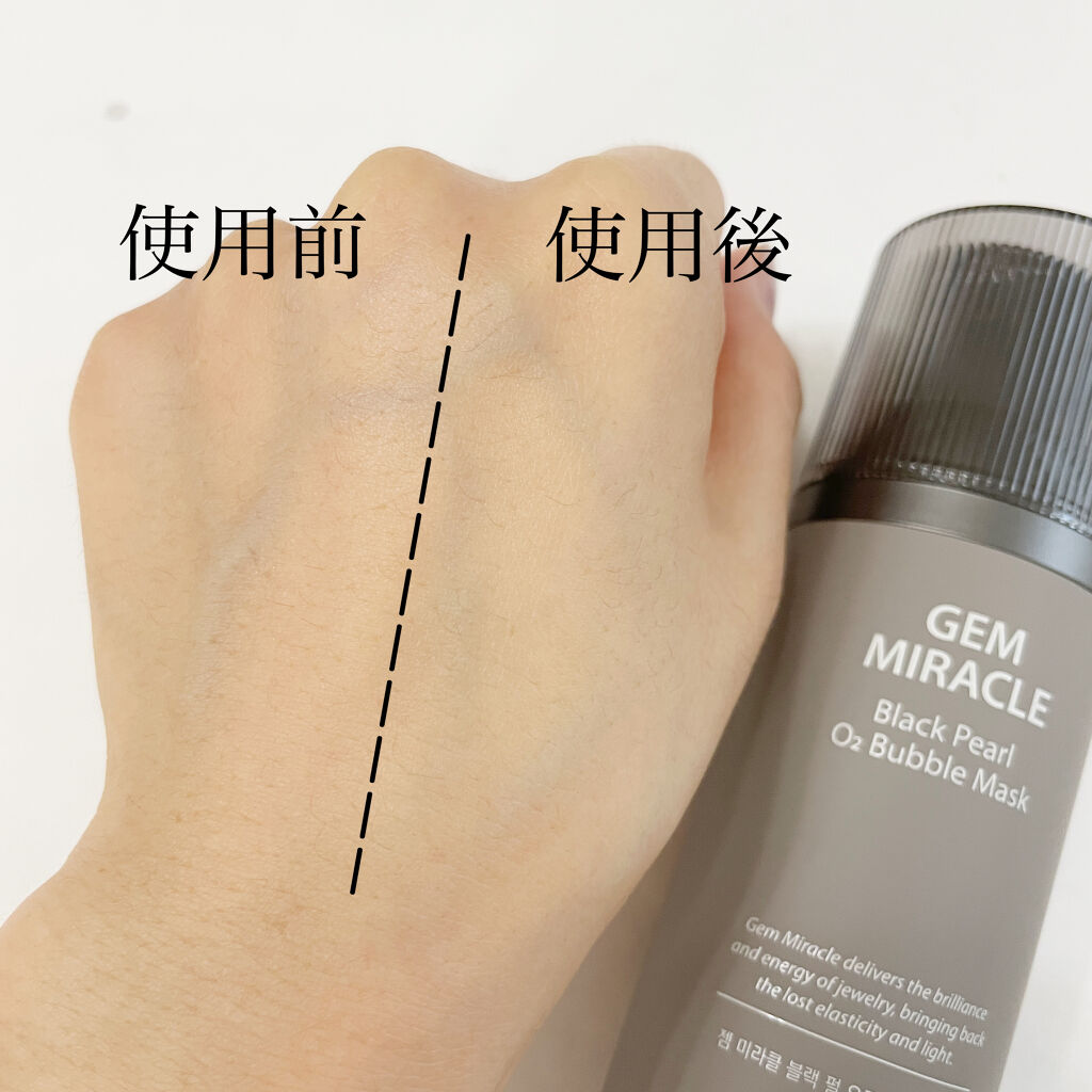 - 真珠のように輝くツヤ玉肌を手に入れるため誕生したのが、ジェムミラクルブラックパールO₂バブルマスクです。 “毛穴汚れ”を酸素の泡とタヒチ産ブラックパールで洗い流し、どの角度から見てもつるんとした真珠のようなお肌へと導くスペシャルケアアイテムです。 5in1の働きでより一層澄んだ素肌へ 肌の汚れ除去・角質除去・肌を整える・肌の引き締め・肌の洗浄 の5つの効果。空気中の酸素と結合し、超微細な酸素泡がシュワシュワっと浮き出ながら、お肌に数万個の膜をつくります。パックしている間、保湿成分の角質層までの浸透を助け、澄んだ印象の素肌へと導きます。 ・タヒチ産黒真珠エキス 品質の高いタヒチ産の天然黒真珠から抽出したアミノ酸成分が皮膚に潤いを与え、健やかな肌へと導きます。 ・真珠パウダー 細やかな天然真珠パウダーが肌にツヤを与え、表情を明るく演出してくれます。 ・酸素キャリア 酸素を運ぶフッ素化合物が酸素バブルを形成し、皮脂や汚れを除去します。皮膚の汚れを取り除くことでくすんだ印象を明るくケアします。 ・ギガホワイト 7種類のハーブが古い角質を除去し、透明感のある印象へと近づけます。 ・パパイヤエキス 天然酵素エンザイムを含有するパパイヤエキスが角質層を柔らかくし、なめらかな肌へと整えます。