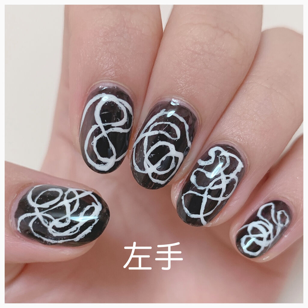 たまにはこんなのもいいなと思い、非対称で好きな色味をつかいました。5点使用の税込550円でできます。サンリオネイルのナイトシルバーとナイトゴールドのマニキュアが好きで使いたくて、右手はそれに合いそうなダークグレーの色をつかいました!!ナイトゴ...
