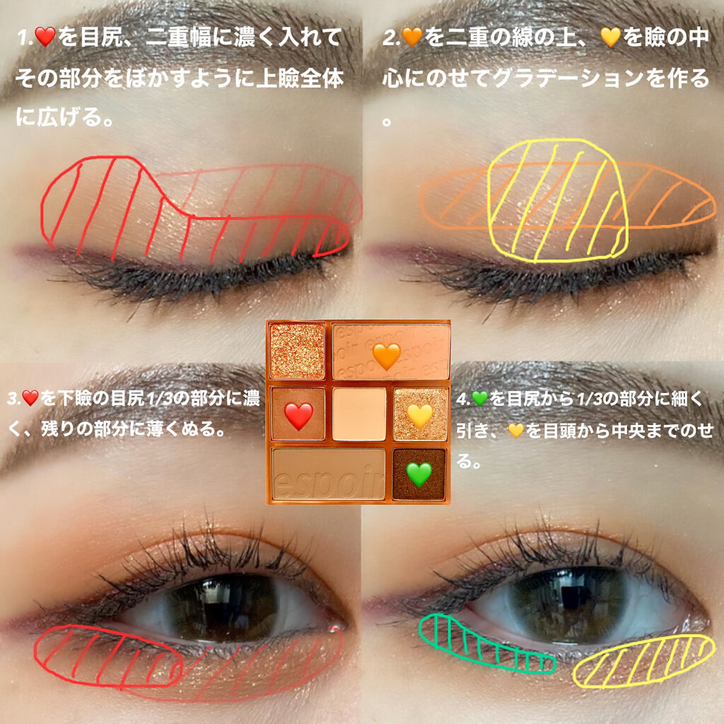 | 1〜4までの番号がかいてあって、その順に塗ると綺麗なアイメイクができるそうです♪どれも普段使いにバッチリなカラーが集まっています♪ | 詳細を見る |