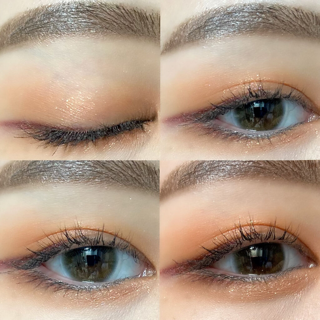UR GLAMBLOOMING EYE COLOR PALETTE 赤みブラウンのマットアイシャドウをベースにしたブラウンメイク グレーカラコンと凄く相性が良い MOLAK 1day #ダズルグレー