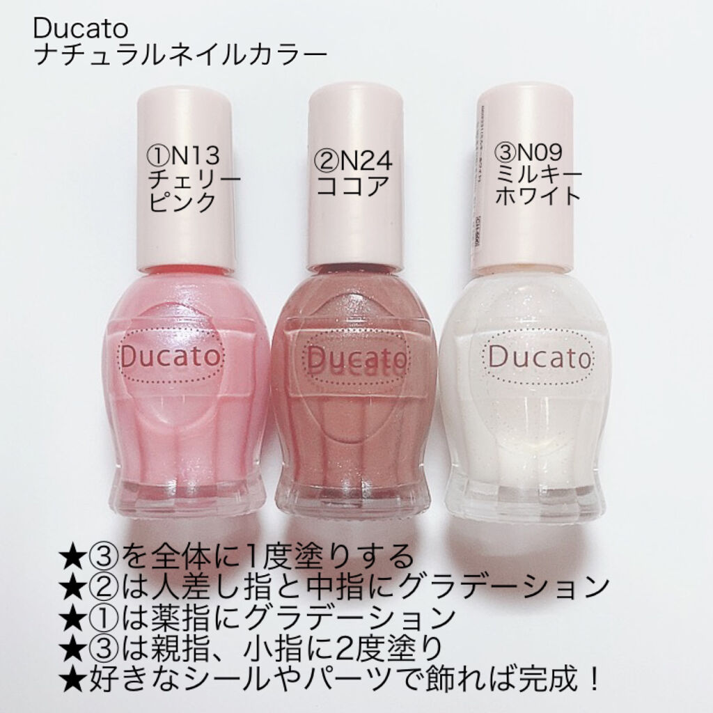 - 季節に関係なく楽しめる使いやすいヌーディーカラーが揃ったネイルカラーです。 デュカート ナチュラルネイルカラー N の色のこだわり ●爪先をナチュラルに、そして 美しく見せる ●1度塗りでシアー、2 度塗りで見たまま 発色。 デュカートのカラーはあえて2 度塗りをすることで艶やかで美しい仕上がりになるよう計算して調色しています。 その日の気分や時間によって、1 度塗り、 2 度塗りそれぞれの仕上がりを楽しむことも。 日本人の肌色にあった絶妙なくすみ加減で、あなたにぴったりのカラーがきっと見つかります。