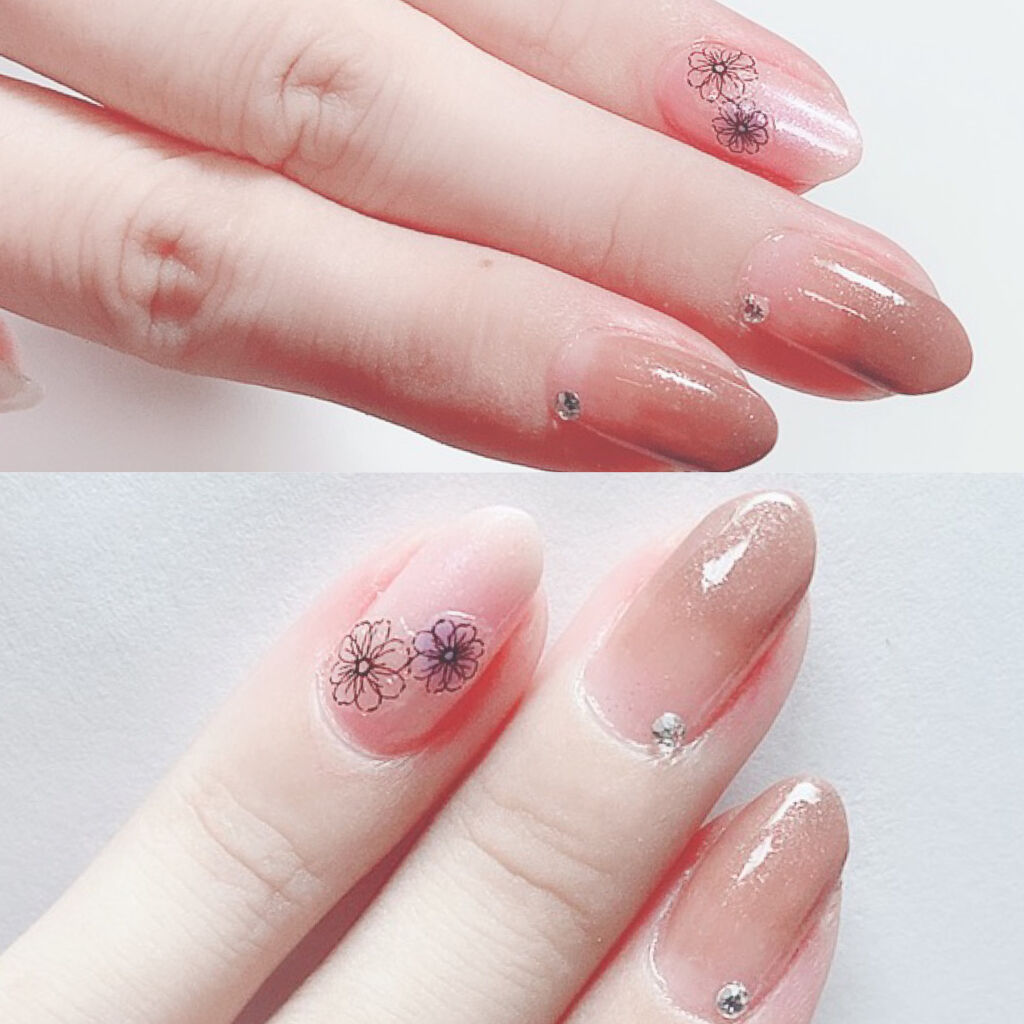 CANMAKEのオールスター揃いで、ナチュラルなデートネイルにしたよ♡今日は相方の母とデート❤そんな時はふんわりやさしいカラーと少しのオシャレ感出したいっ!!グラデーションは手が込んでる風が出せるので、簡単に手早く出来るファンデーションカラー...