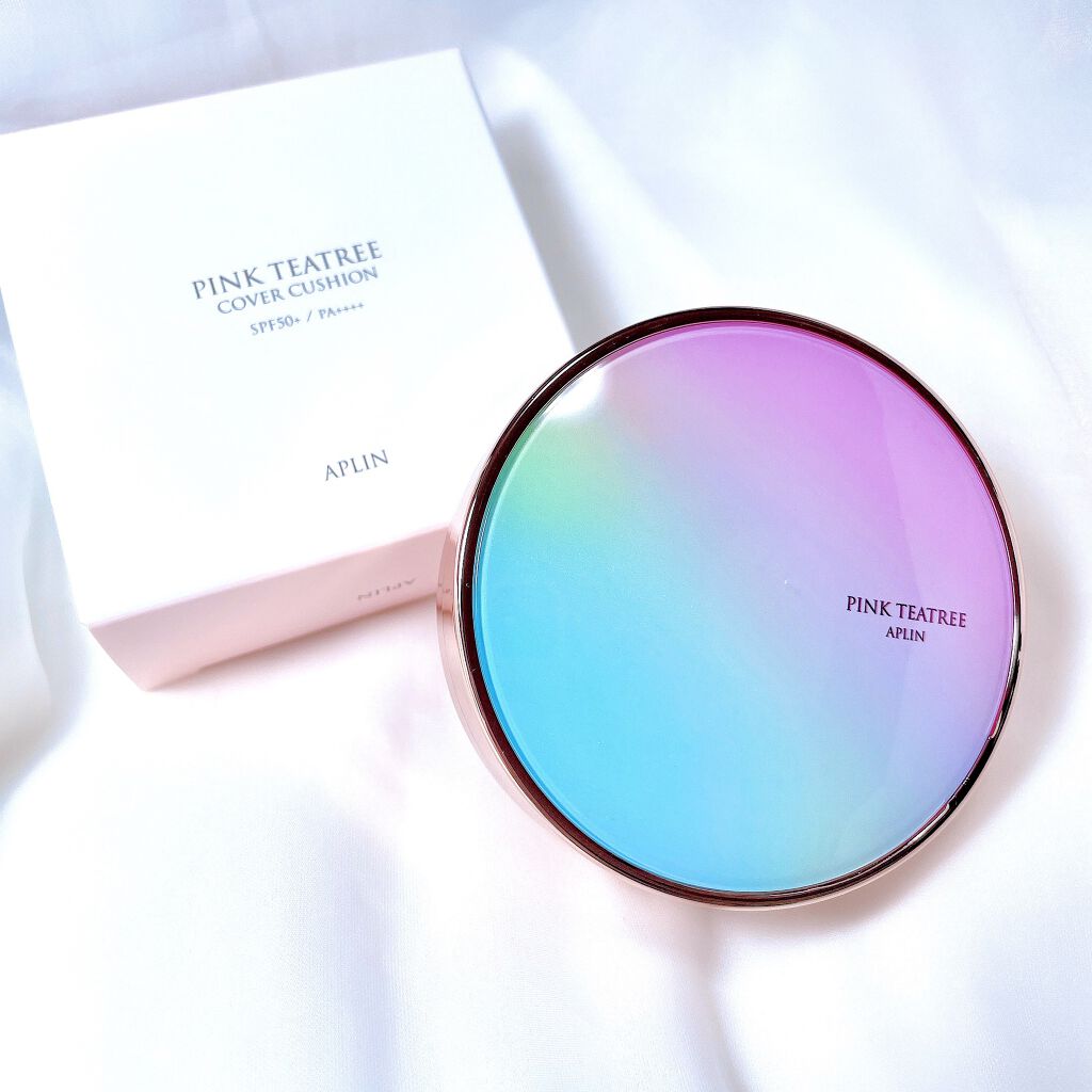 APLIN ピンクティーツリーカバークッション 21号ライトベージュ 2,490円(税込) 少量でよく伸びてハイカバー! 赤みやくすみをしっかりカバ一できるのに、厚塗り感のないなめらかな仕上がり♡ ハイカバーなのにナチュラルなツヤ感とサラッとしつつ、乾燥崩れしにくい仕上がりに感動します!!