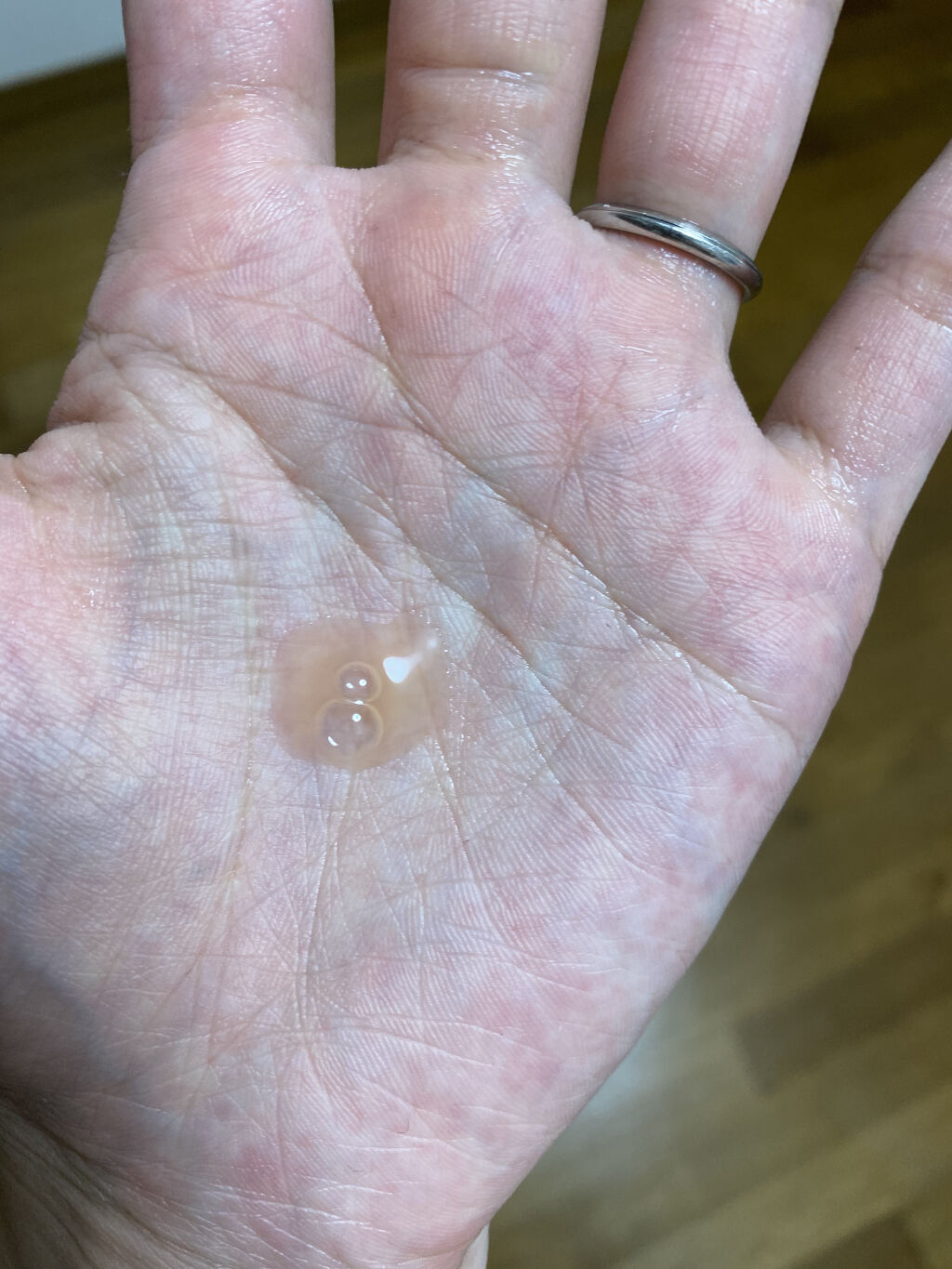 とろっとしたテクスチャー。とろみはあるけど、馴染ませるとサラッとして、ベタつきにくかったです。しっとりして、いつもよりハリがあるように感じました。 昼は乾燥などの外的要因から肌を守り、夜はダメージをケアしてくれるそうです。