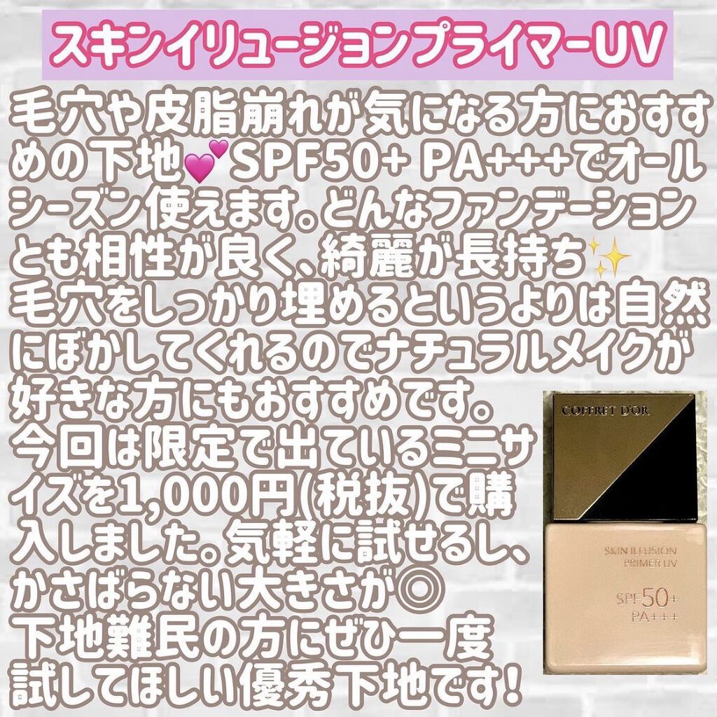 こんにちは。こんばんは。今回はコフレドールのスキンイリュージョンプライマーUVをレビューしたいと思います!廃盤商品のため使用した記録として投稿させて頂きます。【使った商品】コフレドールスキンイリュージョンプライマーUV【使ってみて】ベージュト...