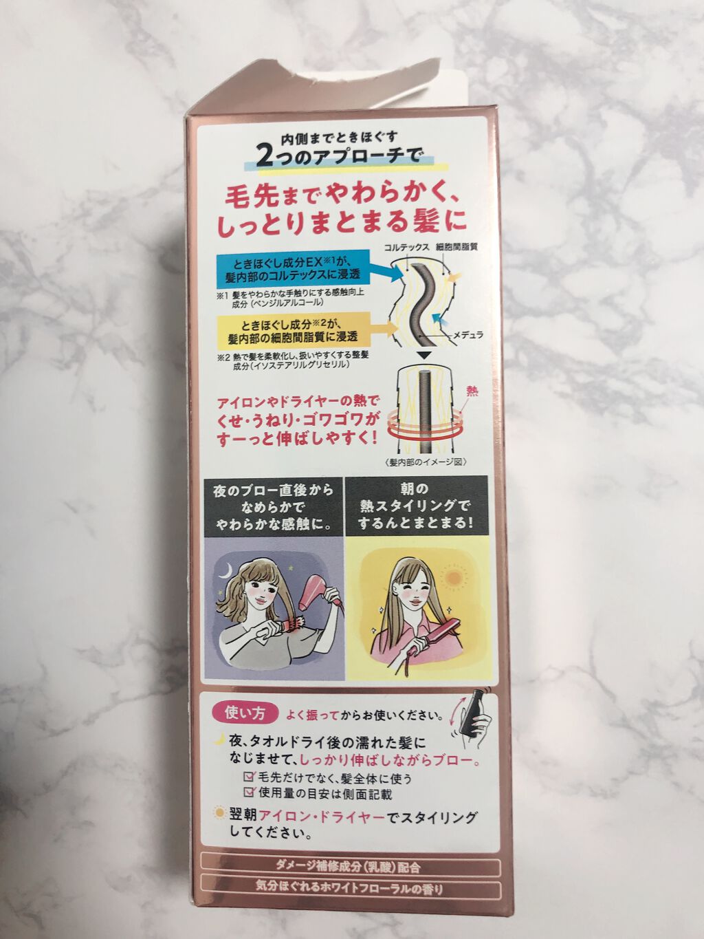 - 頑固なゴワゴワくせ毛に、内側までときほぐす2つのアプローチで、365日使うたび髪やわらかくまとまる。 ●ときほぐし成分EX※1が髪内部のコルテックスに浸透。夜のブロー直後からなめらかでやわらかな感触に ●ときほぐし成分※2が髪内部の細胞間脂質に浸透。朝の熱スタイリングでするんとまとまる ※1感触向上成分(ベンジルアルコール)※2整髪成分(イソステアリルグリセリル) ■気分ほぐれるホワイトフローラルの香り