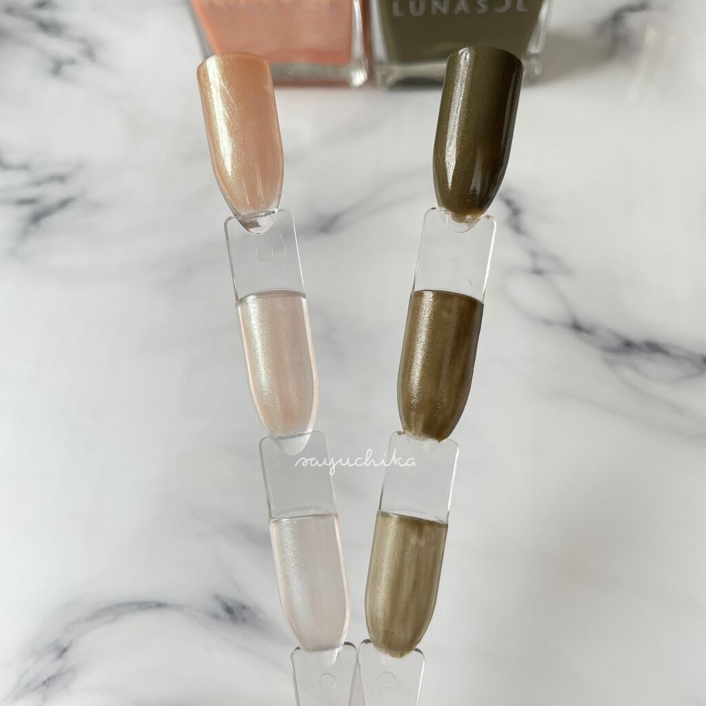 ルナソル2021秋の限定色を楽天先行販売でゲット&スウォッチ2色とも人差し指と中指が1度塗り、薬指と小指が2度塗りですカーキ…EX13UrbanJade一度塗りは少し透け、2度塗りはしっかり発色のゴールドのラメ入りカーキ秋色!って感じカーキで...