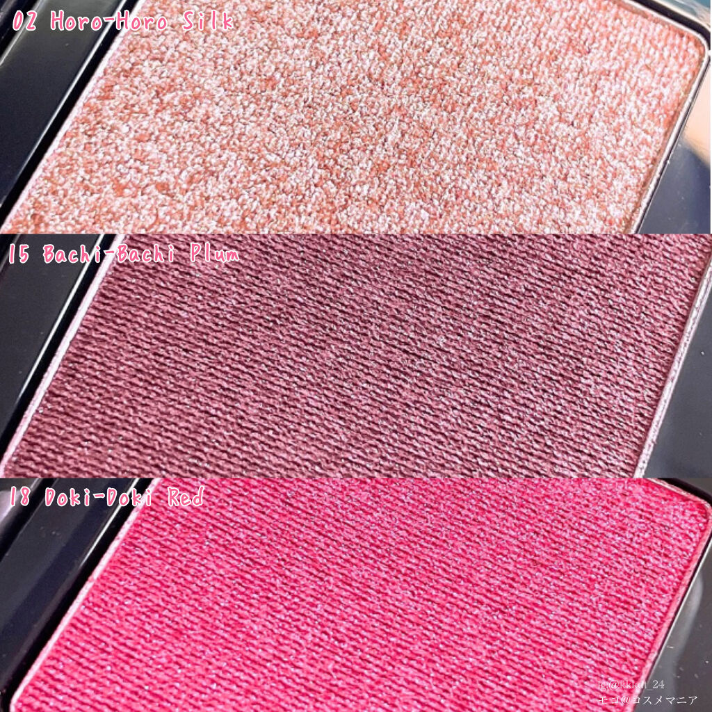 - 弾む色。軽く自由な質感。パウダーとジェルが融合した新感覚テクスチャーのアイシャドウ。 ○表現力豊かでブレンドしやすく、大胆な18色展開。 鮮やかな「マット」、曇りのない「シマー」、華やかな「スパークル」の3種のテクスチャー。 ○見たままの高発色、なのに何もつけていないかのように軽いつけ心地。 ○シルクのような、なめらかな質感と、なじませやすさ。 ○弾性のあるテクスチャーがなめらかにフィット、軽い感触で肌を包み込み、粉っぽくなりにくいユニークな新感覚テクスチャー。 ○よれ・くずれに強い処方。 ○アレルギーテスト済み。 (全てのかたにアレルギーが起きないというわけではありません。) ○ミラー付きの超薄型コンパクト採用。