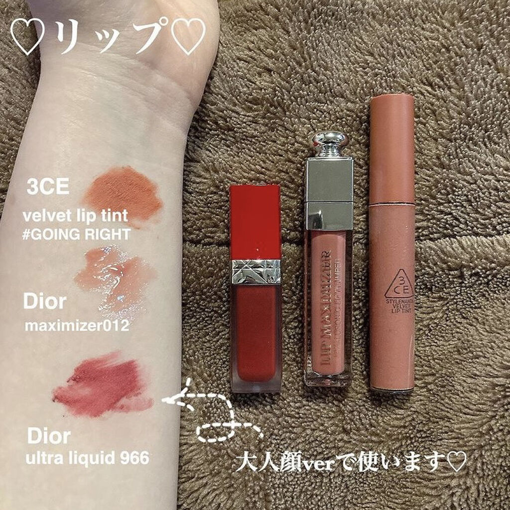 ・軽いつけ心地で伸びが◎ ・重ねるほどぷっくりツヤのあるリップに♡ ・熟した柿のようなジューシーな赤で、色気のあるセクシーなリップに仕上がる! ・青みを感じない色なのでブルベさんはチークやアイメイクで調節が必要 ・マスクにはつきやすいです ・塗り心地がいいので他の色も欲しくなった! 赤リップは赤リップでもどうしてもピンクぽいというか青みに見える赤はよく見かけますが、薄づきや色が落ちかけた時でもこれはしっかりオレンジみの赤に発色してくれます! 個人的に韓国アイドル風メイクやシャープなメイクの時に使うと相性が良く、赤くて女性らしい可愛い感じもありつつ、艶感と立体感があるのでセクシーな印象も与えてくれます❤︎ 水々しいテクスチャーで乾燥しづらいし、食事の後のお直しでもムラになりづらいところがいいなと思ったので別の色も欲しいなあと思いました🤤 ただ、マスクにはちゃんと付くのでティッシュオフなどは必要です! イエベ秋さん1番似合いそうなので、ピンクみのない赤リップお探しの方はチェックしてみて下さい👍