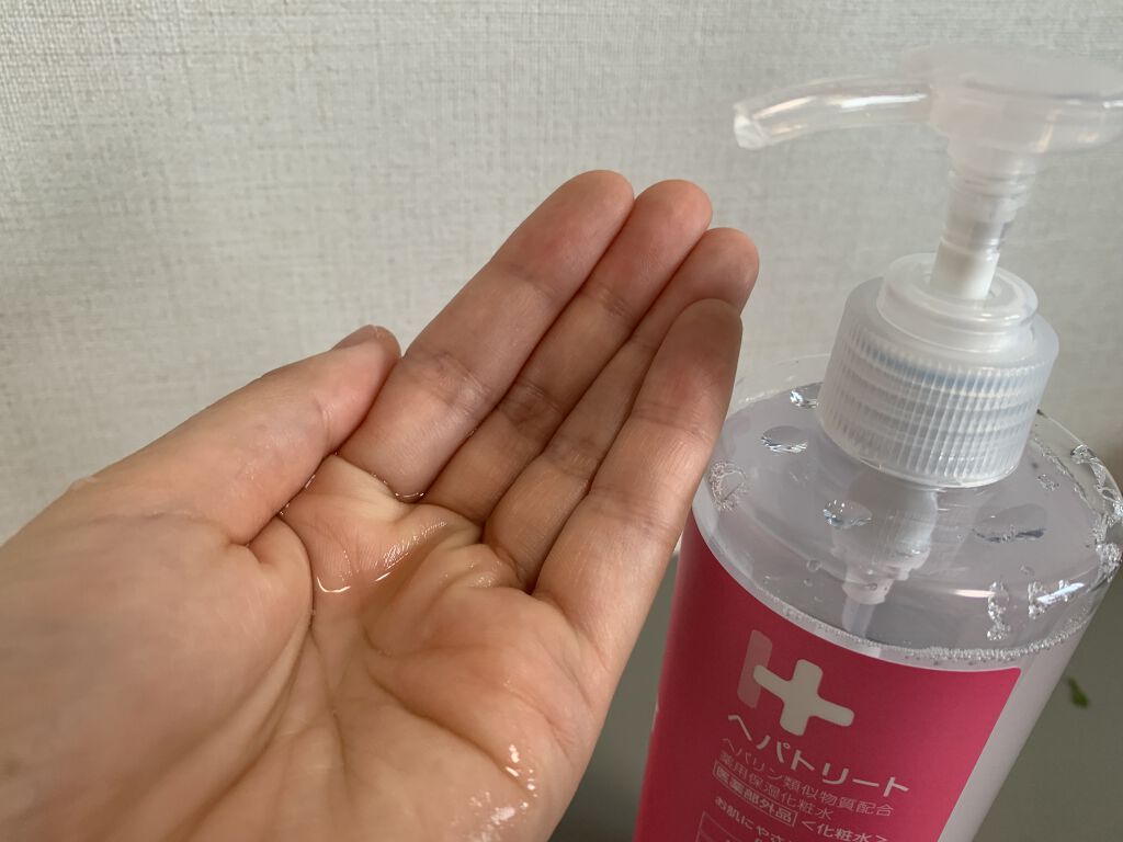 - ヘパトリートは保水有効成分のヘパリン類似物質と肌あれ有効成分のグリチルリチン酸ジカリウムを配合し、8つのフリーを実現。低刺激処方ながら高機能な化粧水です。さらに、薬用化粧水では珍しい大容量ポンプ(385mL)でとても使いやすく、赤ちゃんから大人まで、顔や全身の肌あれ・乾燥に使えます。 ■Wの有効成分 1.ヘパリン類似物質 顔・全身の乾燥を防ぐ 肌の乾燥による肌あれ/あれ性/皮膚を健やかに保つ/肌を整える/あせも/ひび/あかぎれ 2.グリチルリチン酸ジカリウム ニキビを防ぐ/肌をひきしめる/日やけ、雪やけ後のほてりを防ぐ/しもやけ/かみそりまけを防ぐ ■肌にやさしい低刺激処方<8つのフリー> 無香料/無着色/無鉱物油/無動物油/パラベンフリー/アルコールフリー/石油系界面活性剤フリー/シリコンフリー ※パッチテスト済み ※スティンギングテスト済み