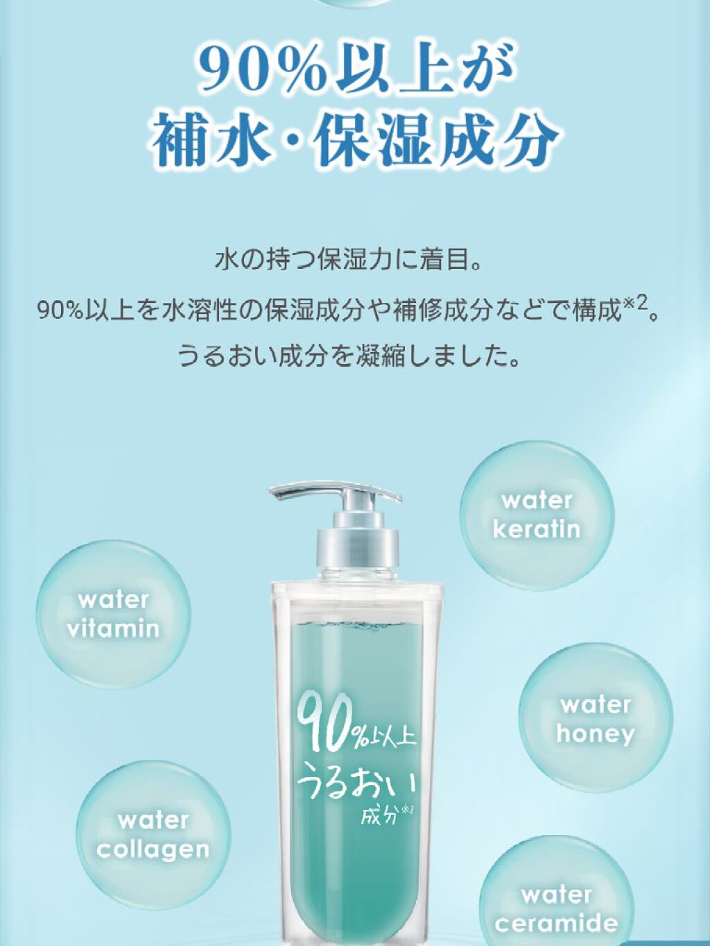 - 美容水から生まれたMIZUシャンプー/トリートメント インナードライ髪の水分量に着目し、髪を美容水で包み込む【新ウォーターパック美容】 製品の90%以上を補水+保湿成分で構成。10種の水溶性美容液成分を配合し、髪の芯からうるおいを与えます。 サルフェート・パラベン・動物実験フリー処方。 シャンプー:スウィートサボンの香り トリートメント:アクアブーケの香り