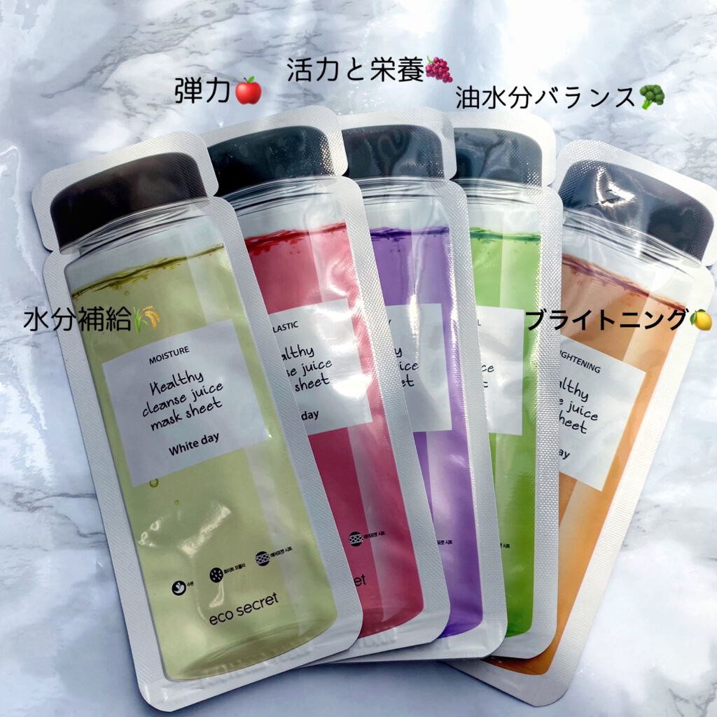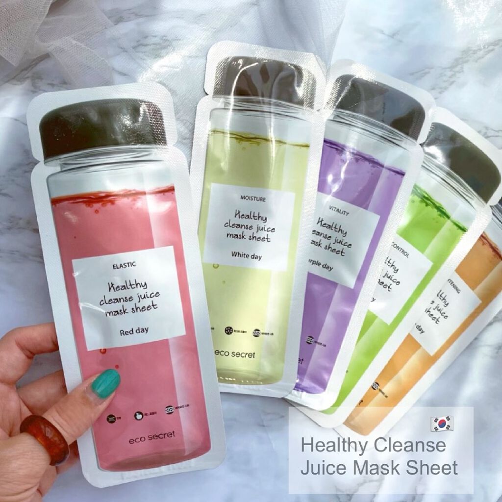 ecosecretエコシークレットヘルシークレンズジュースマスクパック01REDDAY❤️02GREENDAY💚03ORANGEDAY🧡04WHITEDAY💙05PURPLEDAY💜思わず飲みたくなっちゃうような可愛いパッケージが印象的...