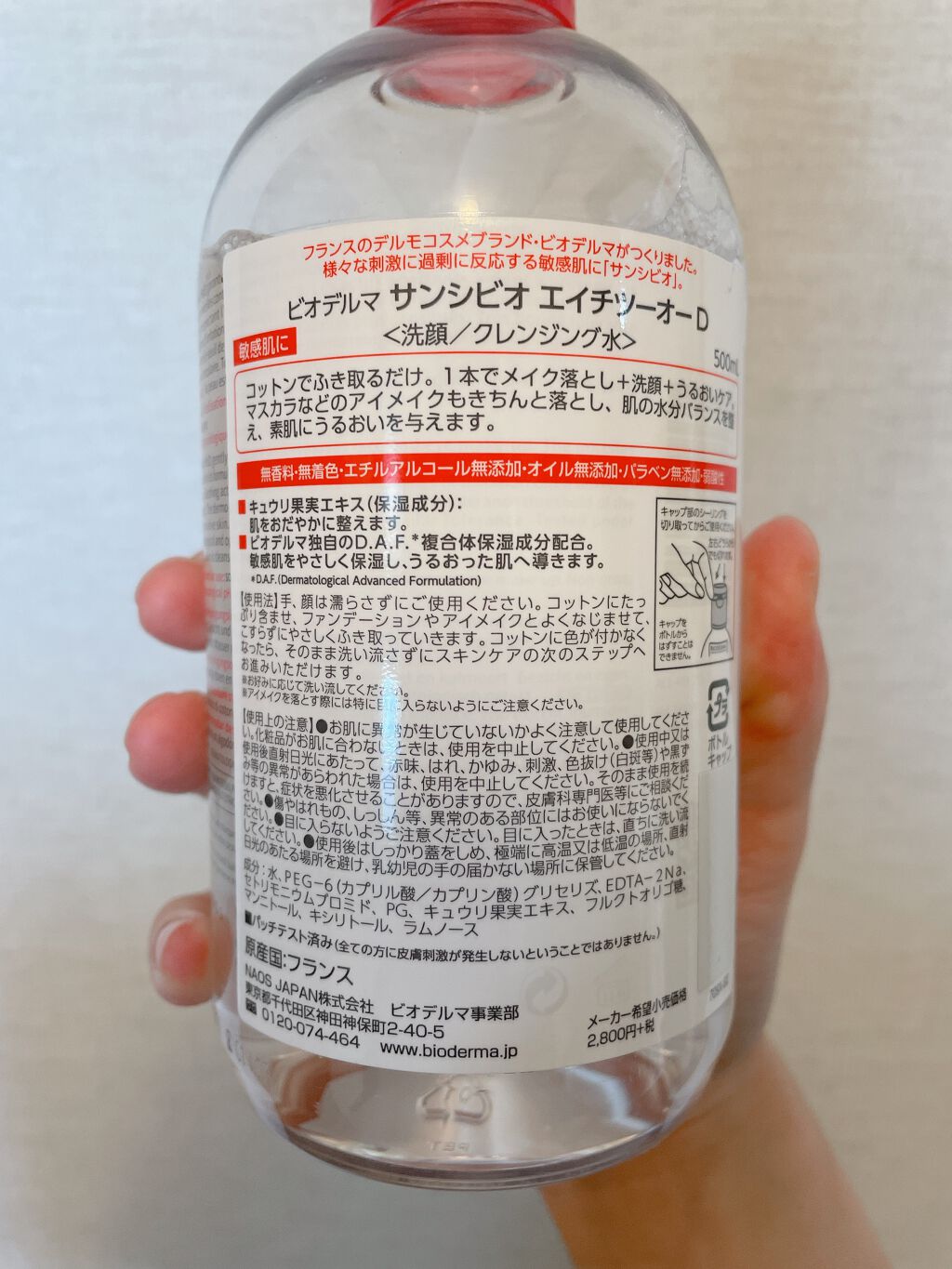 - ※2025年11月下旬〜250ml・500mlの商品パッケージを順次リニューアル。尚、これにかかる商品の返品・交換は承っておりません。 肌にやさしい使い心地で、マスカラなどのアイメイクも素早く落とします。 敏感肌さんも、面倒くさがりやさんも!手放せない!時短クレンジング水! コットンでふき取るだけ。1本でメイク落とし+洗顔+うるおいケア。 マスカラなどのアイメイクもきちんと落とし、肌の水分バランスを保ち、素肌にうるおいを与えます。 ■キュウリ果実エキス(保湿成分): 肌を整えます。 ■ビオデルマ独自のD.A.F.*複合体保湿成分配合。 敏感肌をやさしい使い心地で保湿し、うるおった肌へ導きます。 *D.A.F.(Dermatological Advanced Formulation) 保湿成分: マンニトール、キシリトール、ラムノース
