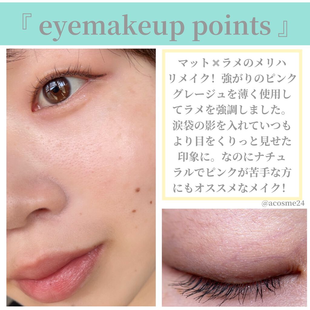 パレットだけ見るとピンクブラウンでピンクグレージュになる気はしない。でも、まぶたに重ねるとちゃんとピンクグレージュ… ラメもキレイだし、多くの方がその魅力にハマるのが分かる✨️ 色味的にも普段使いもしやすいと思います🙆