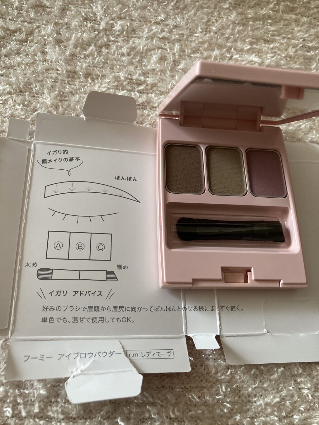 - SNSで人気の商品です! イガリ的メイクの基本。なりたいイメージ自由自在の3色入りアイブロウパウダー。