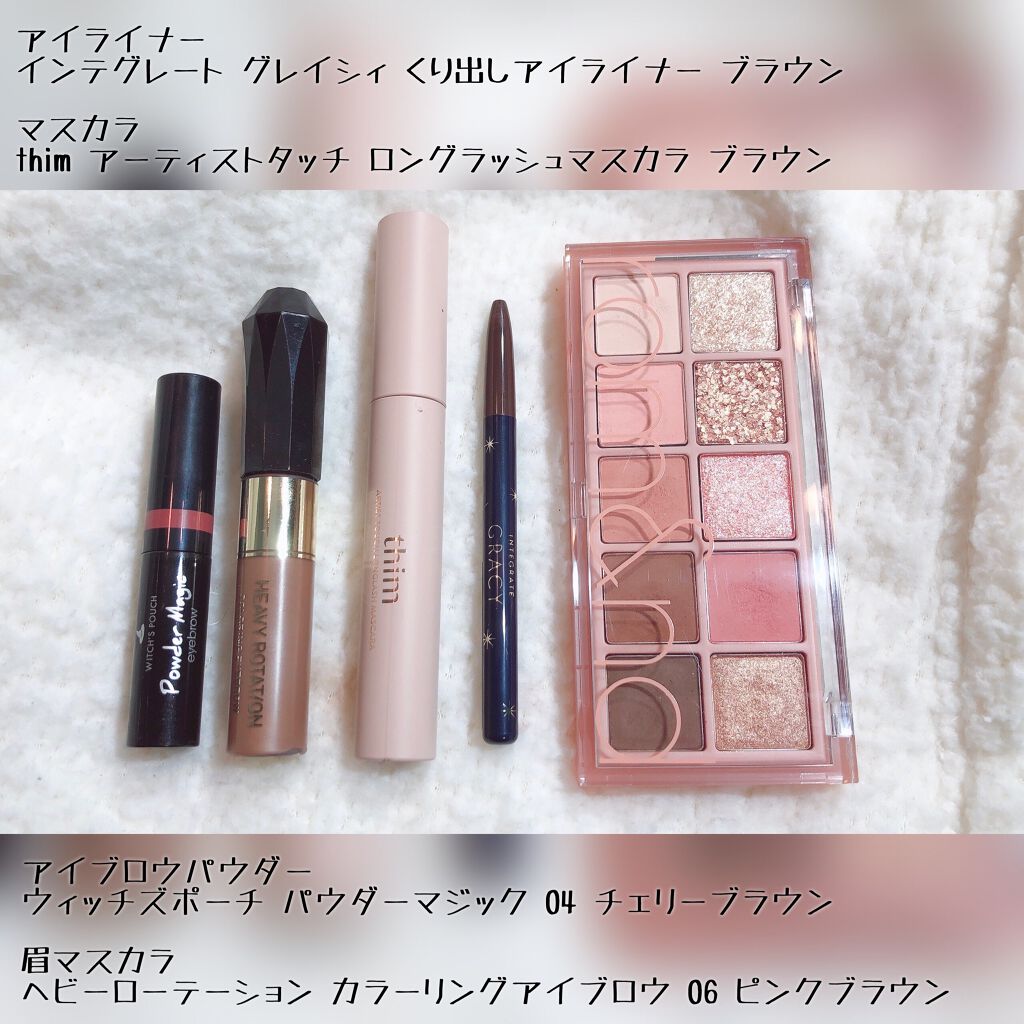 ベースメイクをパウダーファンデでなるべく薄めにしあげています。あまりにも粉っぽくベースを仕上げるとマットアイシャドウの付きが悪くなりそうな気がするので(なんとなく)…😅 パレット左上のベースカラーだけはアイシャドウブラシ(大)それ以外は(小)のブラシで塗っています! 涙袋の影は付属のブラシの細い方で。仕上げに涙袋に左上のベースカラーを少しのせると涙袋がふっくら見えてオススメです◎!