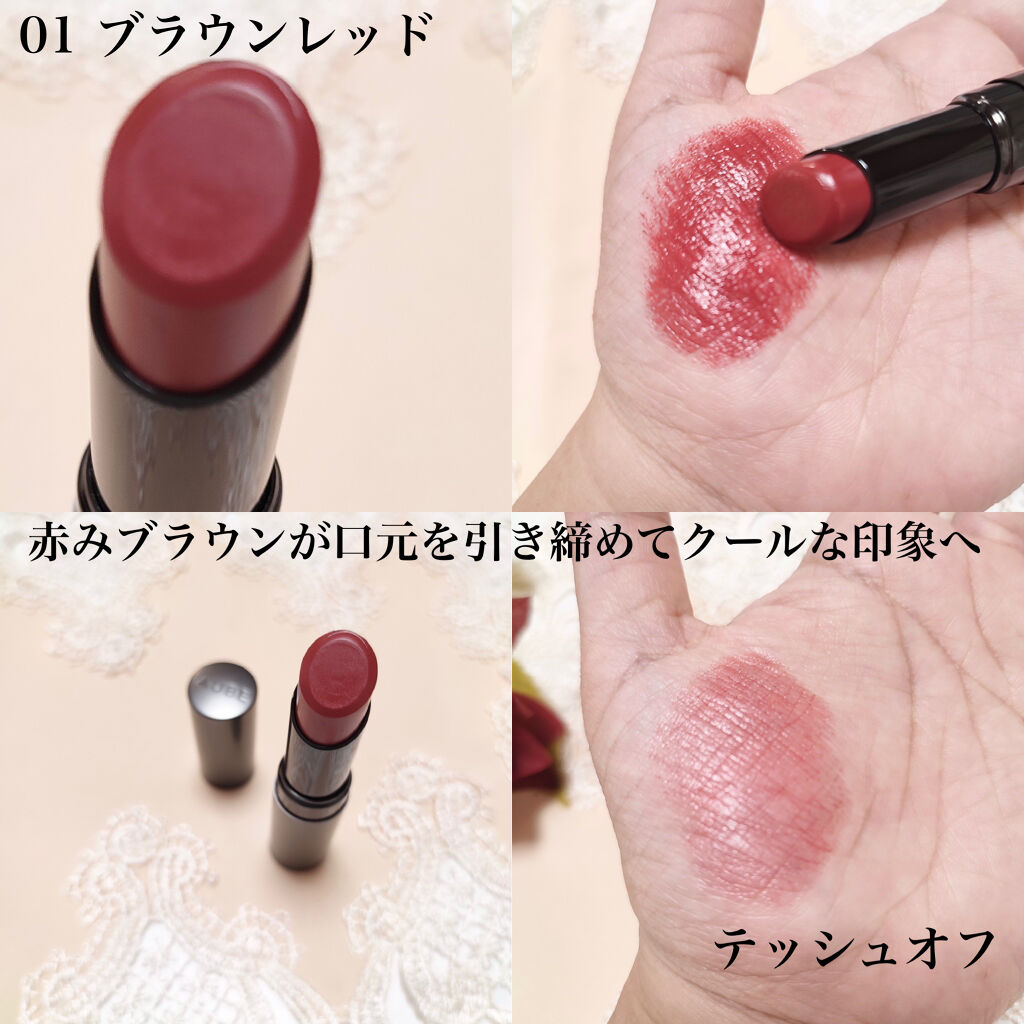 - <01> リンゴ酸ジイソステアリル、テトライソステアリン酸ジペンタエリスリチル、イソノナン酸イソトリ デシル、オクチルドデカノール、水添ポリイソブテン、ジカプリン酸ネオペンチルグリコール、ヘキサヒド ロキシステアリン酸ジペンタエリスリチル、ビスアルキル(C16-18)グリセリルウンデシルジメチコン、パ ラフィン、(ベヘン酸/ポリヒドロキシステアリン酸)ペンタエリスリチル、合成ワックス、マイクロクリスタ リンワックス、セレシン、メトキシケイヒ酸エチルヘキシル、PEG-12ジメチコン、ラウロイルグルタミン酸 ジ(オクチルドデシル/フィトステリル/ベヘニル)、パルミトイルヒドロキシプロピルセルロース、ジステ アルジモニウムヘクトライト、スクワラン、炭酸プロピレン、酢酸トコフェロール、BHT、グリチルレチン酸 ステアリル、シメチコン、カミツレ花エキス、(+/-)セルロース、パルミチン酸、マイカ、ラウロイルアスパ ラギン酸Na、塩化亜鉛、酸化チタン、酸化鉄、水酸化Al、硫酸Ba、トリイソステアリン酸イソプロピル チタン、トリエトキシカプリリルシラン、合成フルオロフロゴパイト、黄4、青1、赤104(1)、赤201、赤202 <02> テトライソステアリン酸ジペンタエリスリチル、イソノナン酸イソトリデシル、オクチルドデカノール、リン ゴ酸ジイソステアリル、水添ポリイソブテン、ジカプリン酸ネオペンチルグリコール、ヘキサヒドロキシステア リン酸ジペンタエリスリチル、ビスアルキル(C16-18)グリセリルウンデシルジメチコン、パラフィン、(ベヘ ン酸/ポリヒドロキシステアリン酸)ペンタエリスリチル、合成ワックス、ラウロイルグルタミン酸ジ(オクチ ルドデシル/フィトステリル/ベヘニル)、マイクロクリスタリンワックス、セレシン、メトキシケイヒ酸エチル ヘキシル、PEG-12ジメチコン、パルミトイルヒドロキシプロピルセルロース、ジステアルジモニウムヘクトラ イト、ヒドロキシステアリン酸エチルヘキシル、スクワラン、炭酸プロピレン、酢酸トコフェロール、BHT、グリチ ルレチン酸ステアリル、シメチコン、カミツレ花エキス、(+/-)セルロース、パルミチン酸、マイカ、ラウロ イルアスパラギン酸Na、塩化亜鉛、酸化チタン、酸化鉄、水酸化Al、硫酸Ba、トリイソステアリン酸イソプ ロピルチタン、トリエトキシカプリリルシラン、合成フルオロフロゴパイト、黄4、黄5、赤104(1)、赤201、赤202 <03> リンゴ酸ジイソステアリル、テトライソステアリン酸ジペンタエリスリチル、イソノナン酸イソトリ デシル、オクチルドデカノール、水添ポリイソブテン、ジカプリン酸ネオペンチルグリコール、ヘキサヒド ロキシステアリン酸ジペンタエリスリチル、ビスアルキル(C16-18)グリセリルウンデシルジメチコン、パ ラフィン、(ベヘン酸/ポリヒドロキシステアリン酸)ペンタエリスリチル、合成ワックス、マイクロクリスタ リンワックス、セレシン、メトキシケイヒ酸エチルヘキシル、PEG-12ジメチコン、ラウロイルグルタミン酸 ジ(オクチルドデシル/フィトステリル/ベヘニル)、パルミトイルヒドロキシプロピルセルロース、ジステ アルジモニウムヘクトライト、スクワラン、炭酸プロピレン、酢酸トコフェロール、BHT、グリチルレチン酸 ステアリル、シメチコン、カミツレ花エキス、(+/-)セルロース、パルミチン酸、マイカ、ラウロイルアスパ ラギン酸Na、塩化亜鉛、酸化チタン、酸化鉄、水酸化Al、硫酸Ba、トリイソステアリン酸イソプロピル チタン、トリエトキシカプリリルシラン、合成フルオロフロゴパイト、黄4、青1、赤104(1)、赤201、赤202 <05> リンゴ酸ジイソステアリル、テトライソステアリン酸ジペンタエリスリチル、イソノナン酸イソトリ デシル、オクチルドデカノール、水添ポリイソブテン、ジカプリン酸ネオペンチルグリコール、ヘキサヒド ロキシステアリン酸ジペンタエリスリチル、ビスアルキル(C16-18)グリセリルウンデシルジメチコン、パ ラフィン、(ベヘン酸/ポリヒドロキシステアリン酸)ペンタエリスリチル、合成ワックス、マイクロクリスタ リンワックス、セレシン、メトキシケイヒ酸エチルヘキシル、PEG-12ジメチコン、ラウロイルグルタミン酸 ジ(オクチルドデシル/フィトステリル/ベヘニル)、パルミトイルヒドロキシプロピルセルロース、ジステ アルジモニウムヘクトライト、スクワラン、炭酸プロピレン、酢酸トコフェロール、BHT、グリチルレチン酸 ステアリル、シメチコン、カミツレ花エキス、(+/-)セルロース、パルミチン酸、マイカ、ラウロイルアスパ ラギン酸Na、塩化亜鉛、酸化チタン、酸化鉄、水酸化Al、硫酸Ba、トリイソステアリン酸イソプロピル チタン、トリエトキシカプリリルシラン、合成フルオロフロゴパイト、黄4、青1、赤104(1)、赤201、赤202 <07 ラズベリーチョコレート> テトライソステアリン酸ジペンタエリスリチル、イソノナン酸イソトリデシル、オクチルドデカノール、水添ポリイソブテン、ジカプリン酸ネオペンチルグリコール、リンゴ酸ジイソ