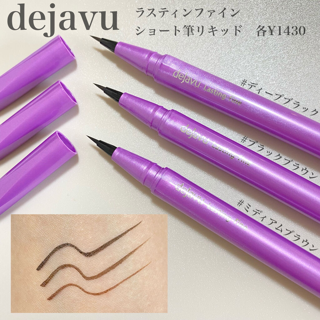 💜dejavuラスティンファインEショート筆リキッドミディアムブラウン💜筆先が“5mmのショート筆”で、筆が長すぎずしなりにくいため、安定して極細ラインが描けるよう設計されていてブレずに狙ったラインが描きやすいアイライナーです☺️皮脂・汗・涙...