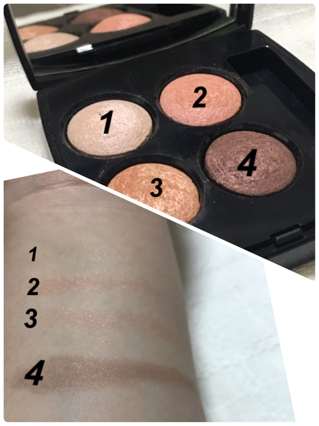🐈⬛CHANELレキャトルオンブル78リヴァージュ🐾天気は悪いけど明日から4連休、会社に行かなくていいと思うと気持ちは清々しいぜ。①左下ベージュをアイホールに②右上ブルー目尻広め③右下ブラウン目の際④左上ラメを目頭から黒目上使いにくそうな水...