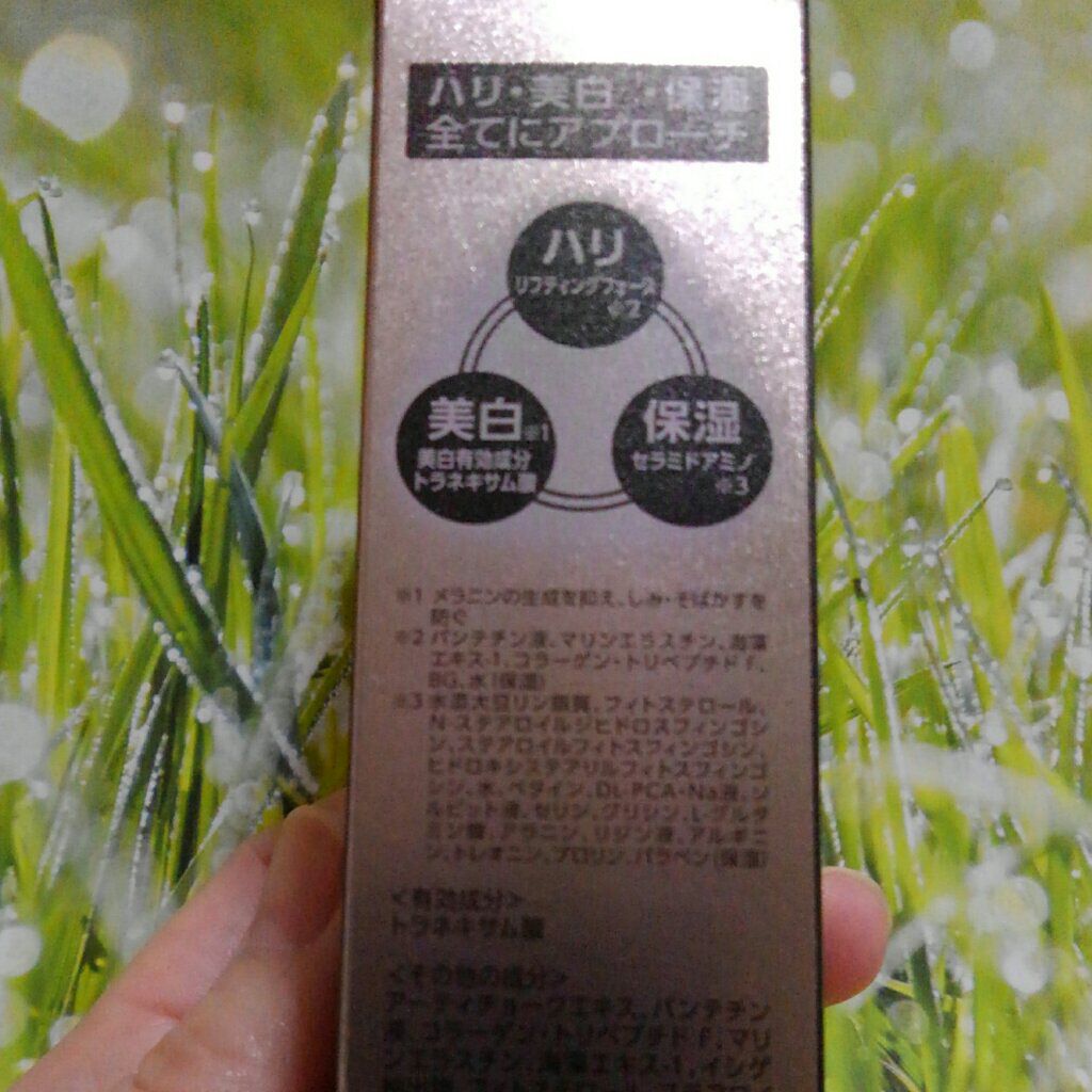 - ハリ、美白※1、高保湿を一挙に叶える その名もパーフェクトな乳液状美容液 ・美容液(美容成分を引き込む)と乳液(柔らかく整え守る)の機能が1つに。 ・化粧水の後これ1品で、乳液やクリームがいらない高保湿設計。 ・ハリ保湿成分リフティングフォース※2をシリーズ中最高濃度で配合。(リフトホワイト ローション モイストと比べて3倍配合) ※1メラニンの生成を抑えシミ・ソバカスを防ぐ ※2パンテチン液、マリンエラスチン、海藻エキス-1、コラーゲン・トリペプチド F、BG、水