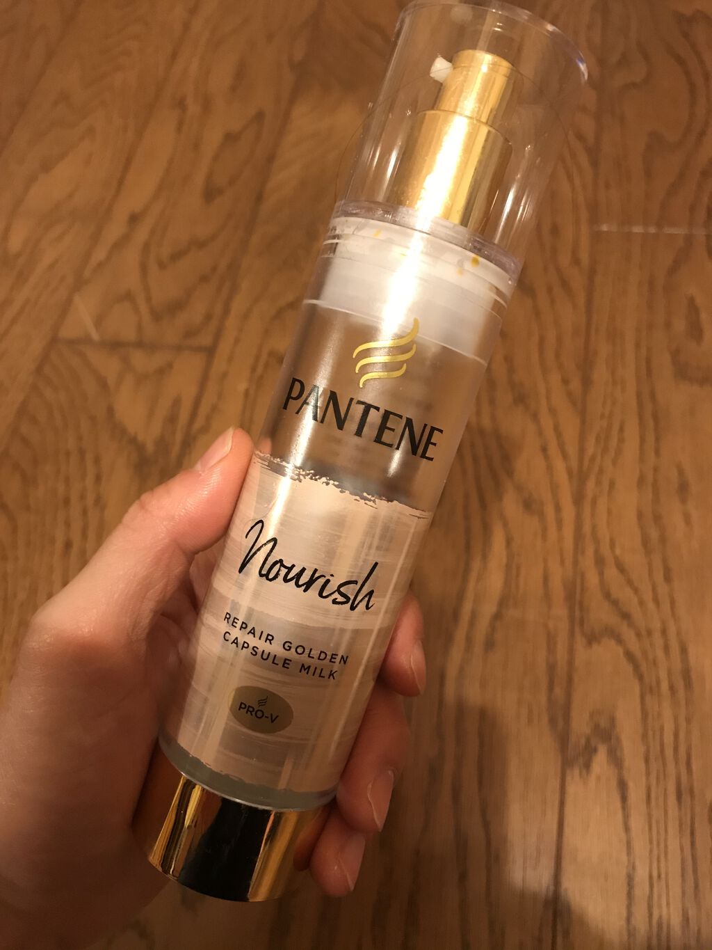 洗い流さないトリートメント!トリートメントってベタベタしたりオイル過ぎたりミルクだとすぐ乾燥したりで好きになれるものがすくなかったんだけど、これは使い心地がすごくよくて、髪の毛がするっとまとまって寝癖も最小限だし何より潤いが違った!!! 黄色のつぶつぶがパンテーンのシンボル、PRO-V処方カプセル。エアレスボトルで高級感もあり、出てくるときに弾けるこのカプセルがいい仕事してくれてるのかダメージ放題の私の髪の毛もしっかり潤いキープできるようになったよ
