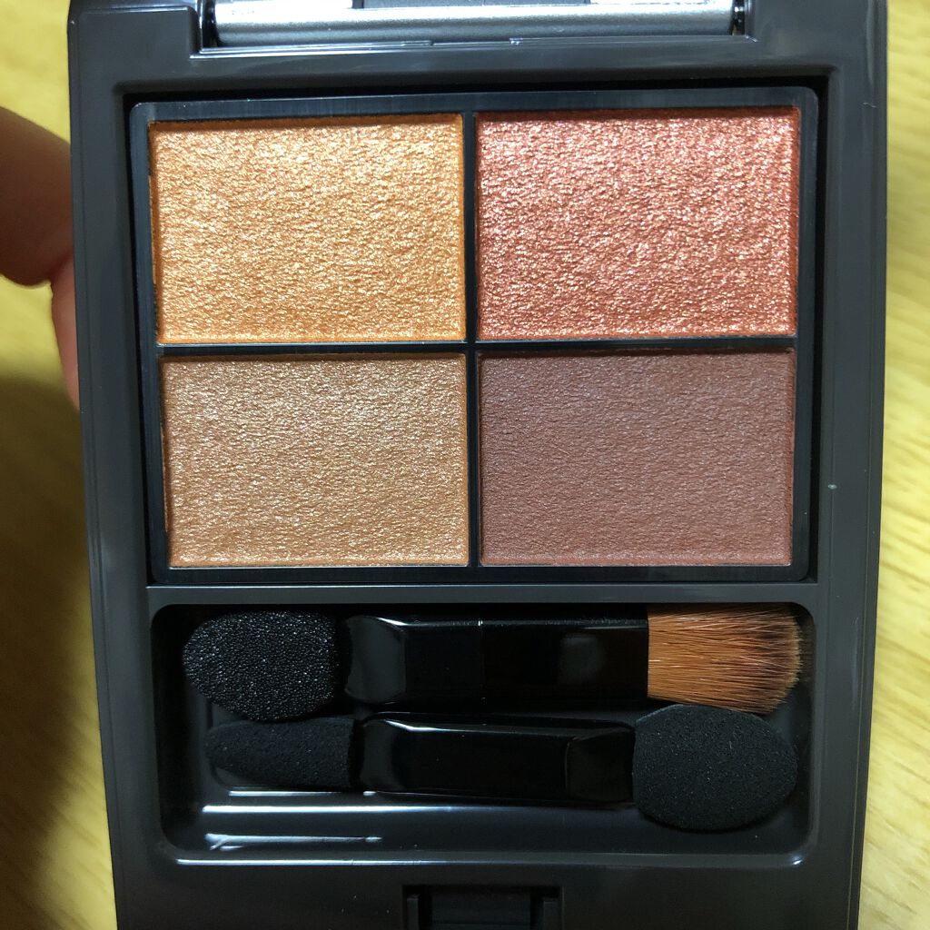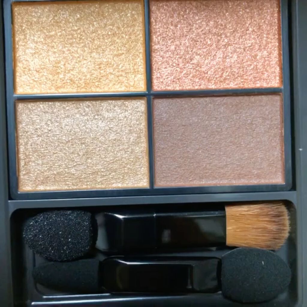 白みピンクのラメカラー、パープルより青みピンクのラメカラー、はっきりめ発色のレッドカラー、柔らかいオレンジカラーの4色パレットです。 4色入っているのにコンパクトなサイズ感でポーチの中でも場所を取りません。 発色は柔らかく濃さの調節がしやすいので意外と使いやすいパレットだと思います。
