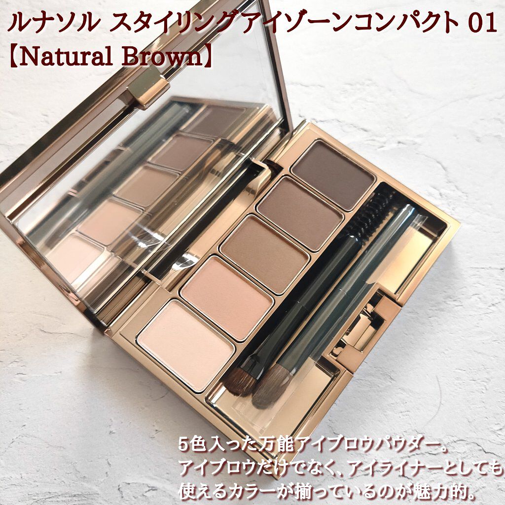ルナソルスタイリングアイゾーンコンパクトN/02ソフトアッシュ🤍5色入ったアイブロウパウダーで、アイシャドウやアイライナー、ノーズシャドウなど万能に使えるアイテムです🥰ソフトアッシュのカラーは、馴染みいい万能なブラウン!どんなメイクにも合う!...